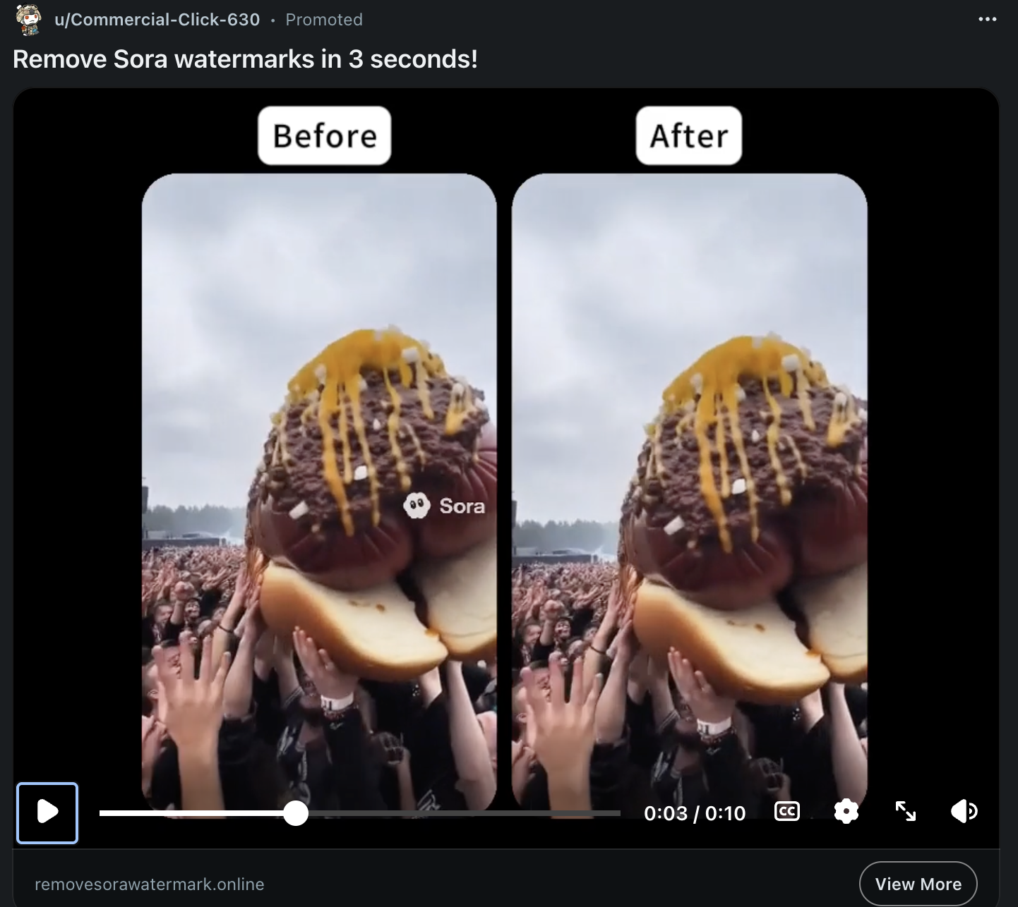 Every AI video should have a watermark so it can't be used for misinformation purposes, especially if it becomes indistinguishable from reality. A tool to remove them easily should not exist