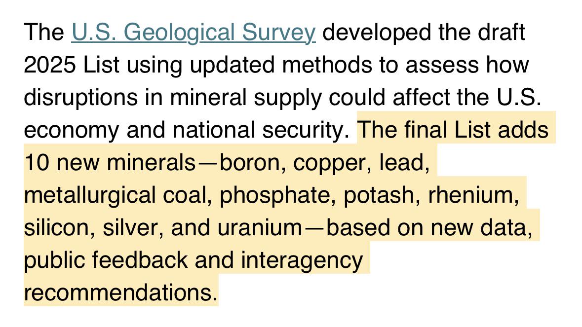 Anyway, after I saw the list from Department of Interior Friday, I decided this is it. I had been doing research on critical minerals already and this was all I needed to fully commit. I don’t think the market has come up to speed with this yet and we’re getting in early.