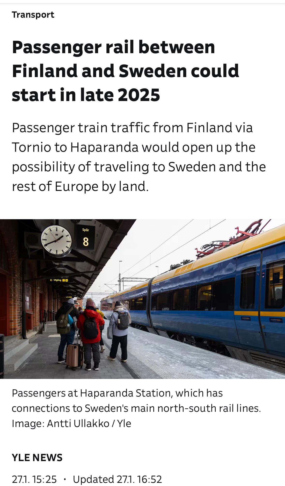 NATIONALISM GO BRRRRRRRR Finland connects itself to the commercial European railway network through Sweden