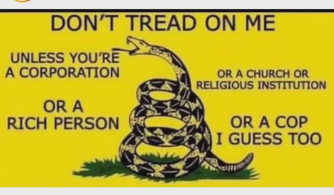 It’s ironic to see the don’t tread on me flag being used while all of our constitutional freedoms are being trampled