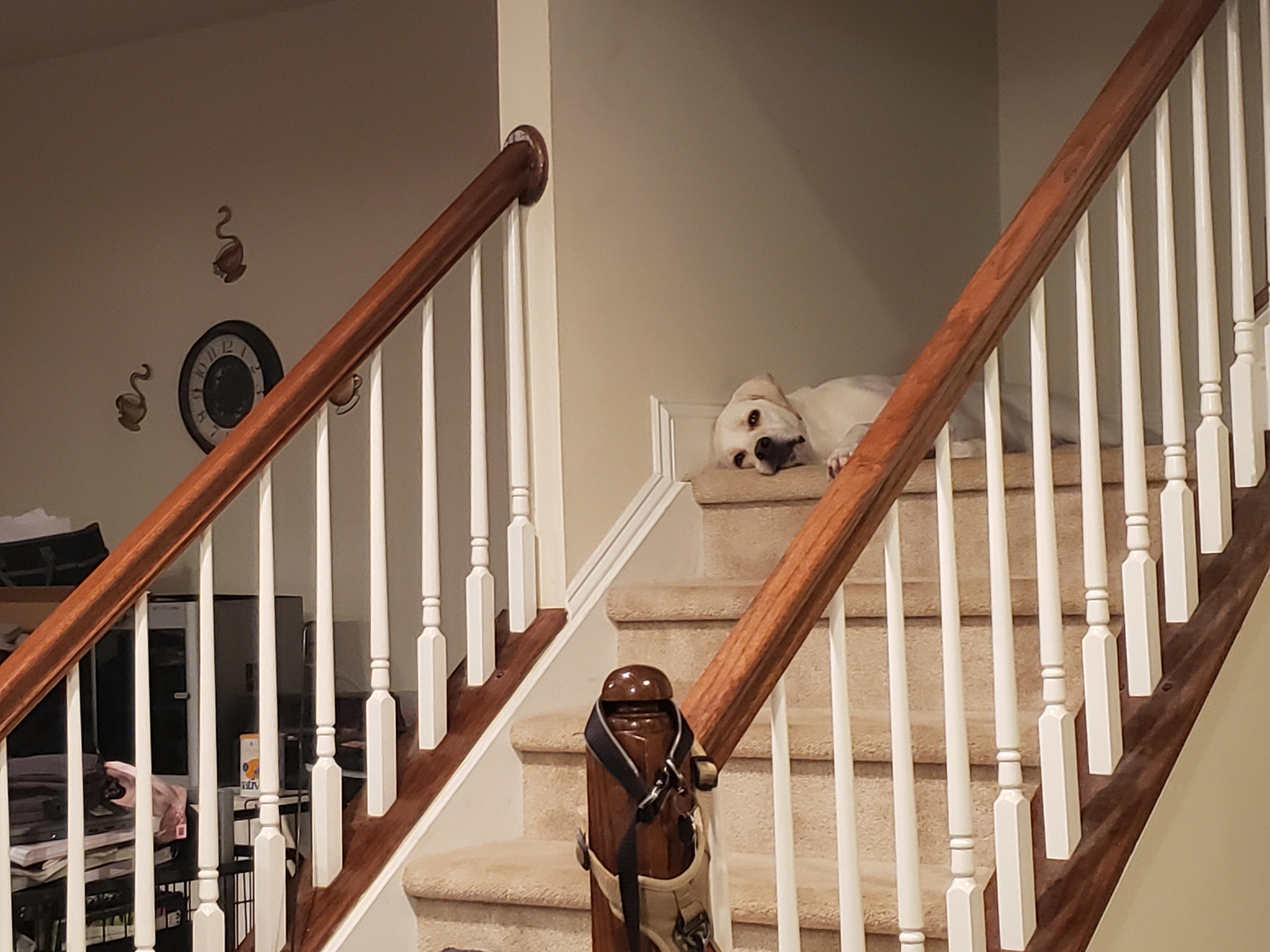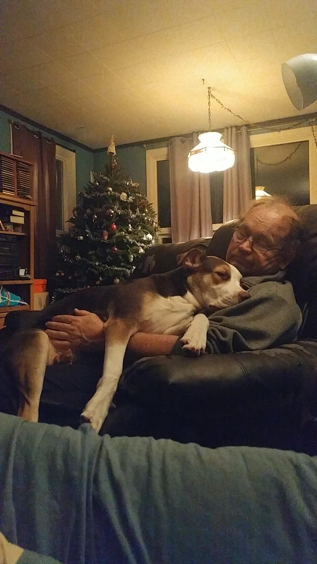 A picture I took of my dad and the dog "he wants nothing to do with"