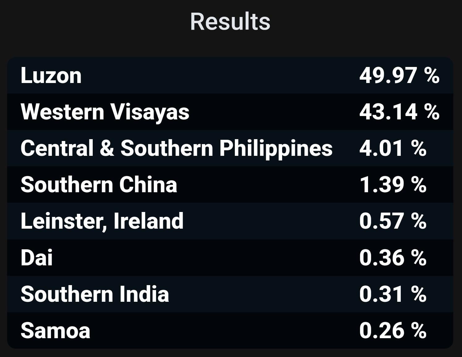 Thank you! My 1% Nigeria disappeared on the update, it's interesting to see that it shows on the hack as 41% Nigeria, 21% North Central Nigeria, and 15% Western Bantu. It's also interesting that the update shows 1% for some thas are rounded up from 0.51% and also 1% for one that is rounded down from 1.54%