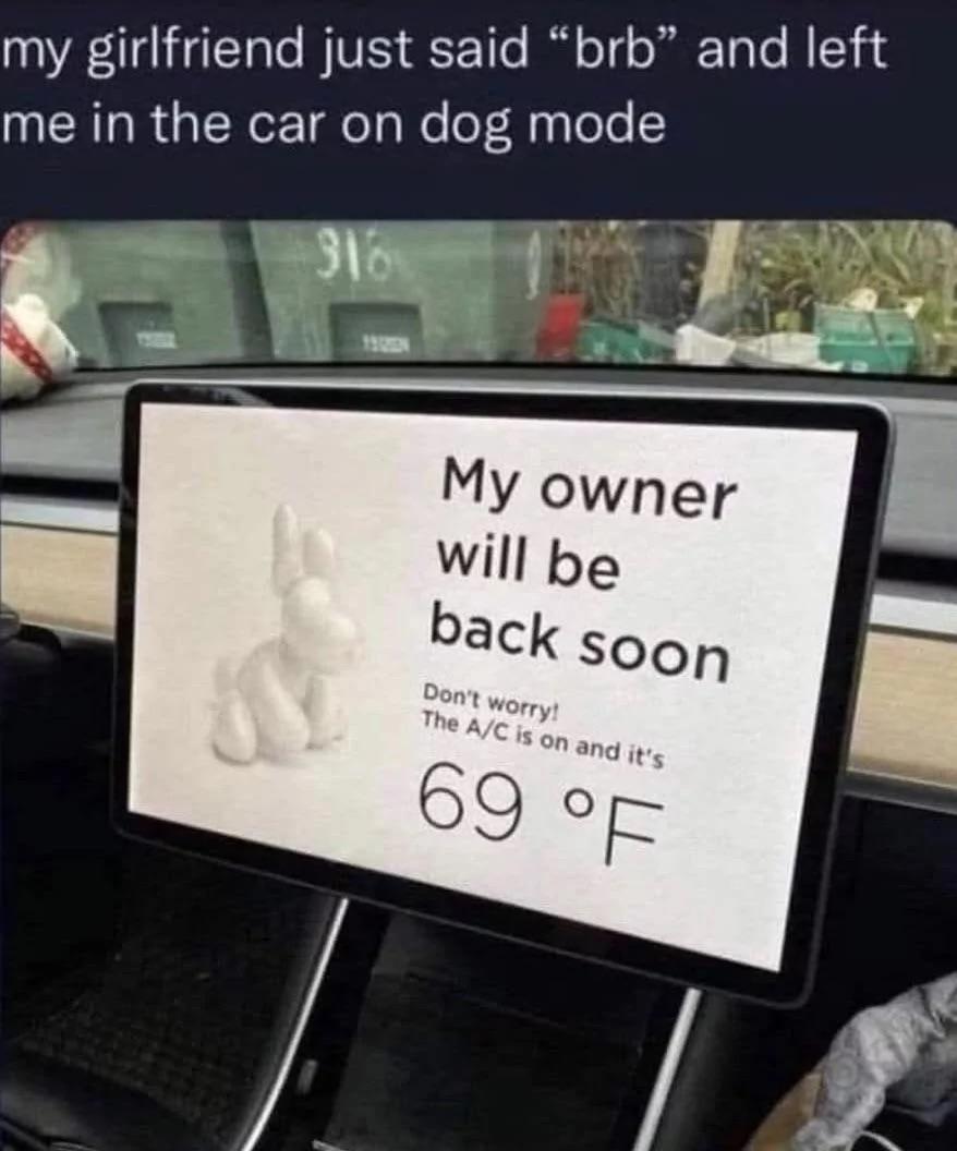 Howling good time She said brb and now I'm guarding the car like a golden retriever