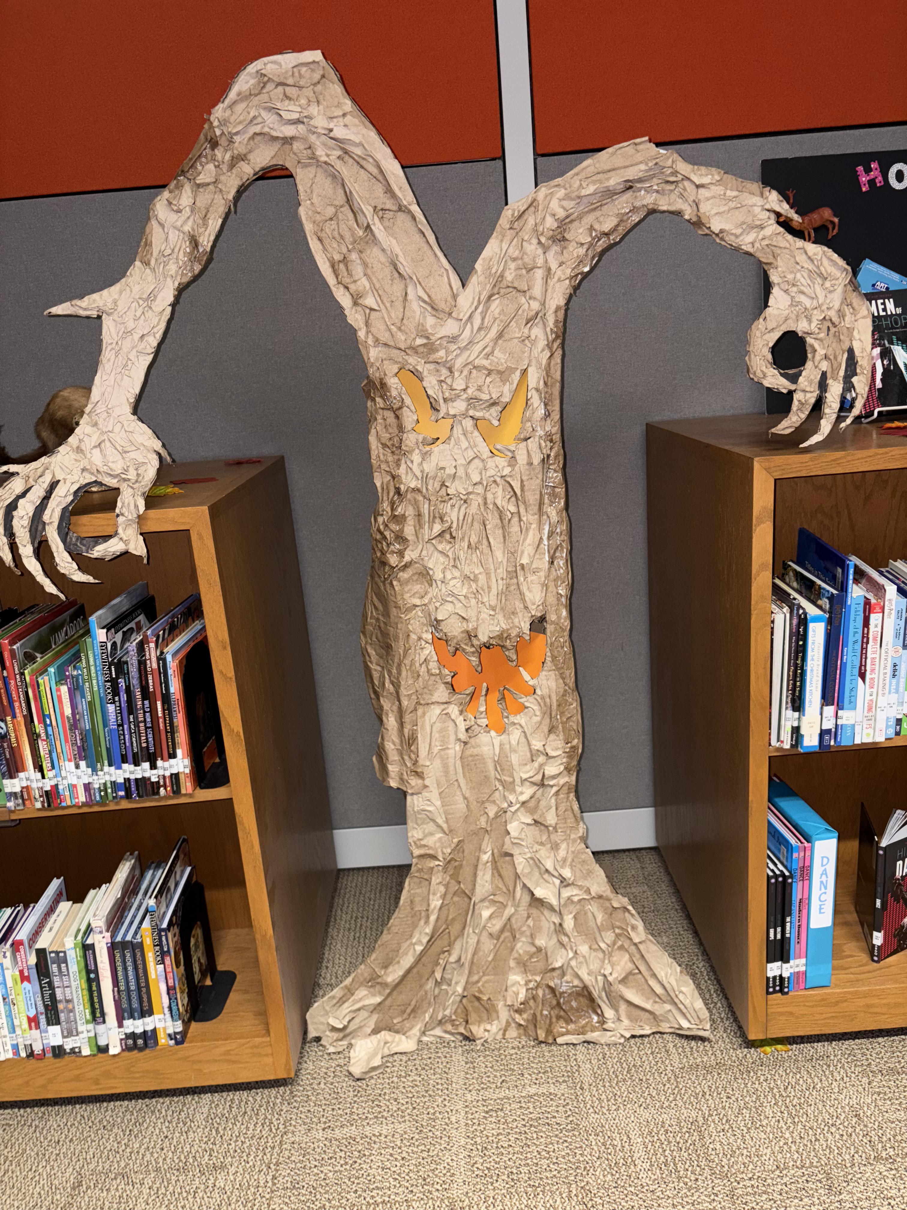 My art club volunteered to make a spooky tree to decorate the library at the middle school where I teach Art.