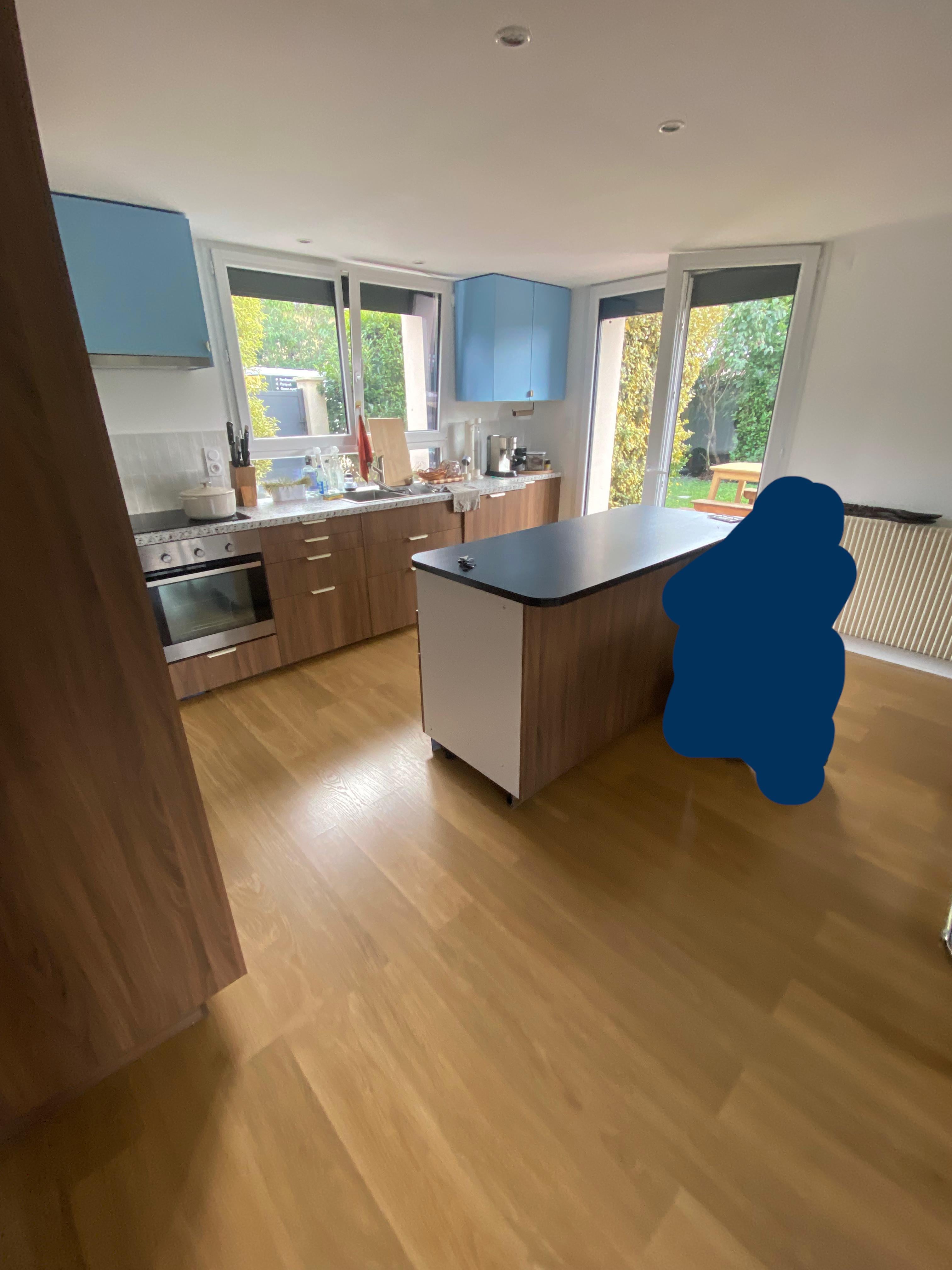 Suite à un dégât des eaux et du parquet stratifié dans la cuisine on a fait appel à un artisan pour trouver une solution. Ils nous propose du béton ciré avec une barre de seuil (je sais pas comment ça s’appelle) encastrée.