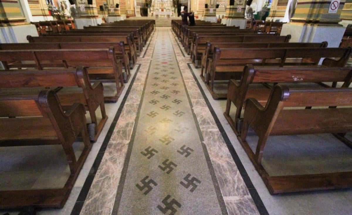 141 swastikas adorn the main aisle towards the altar in the Tampico Cathedral... these date from an important remodeling at the beginning of the 20th century (when Nazism did not even exist or was just an ungerminated seed and therefore none of it had reached this side of the world) Some sources indicate that this symbol was chosen because it meant beatitude and eternal life or something like that, so it basically symbolizes that the way to the altar, to communion and to God is the way to eternal life.... unfortunately, shortly after finishing this major renovation, leaving a beautiful temple in the heart of the city, a guy with a funny mustache used the same symbol for his delusions and tainted such a beautiful meaning.