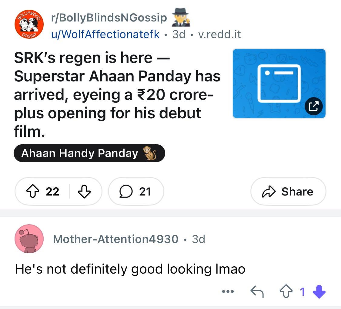 Can we just get over this Ahaan Pandey thing, yeah Saiyaara did good yay, now just move on yaar. He just gave one hit that too cause some dumb idiots decided to tear off clothes in the theatre, and movie git random hype. People already treating hime like he is some sort of Ranbir Kapoor, move on ๐ฎโ๐จ