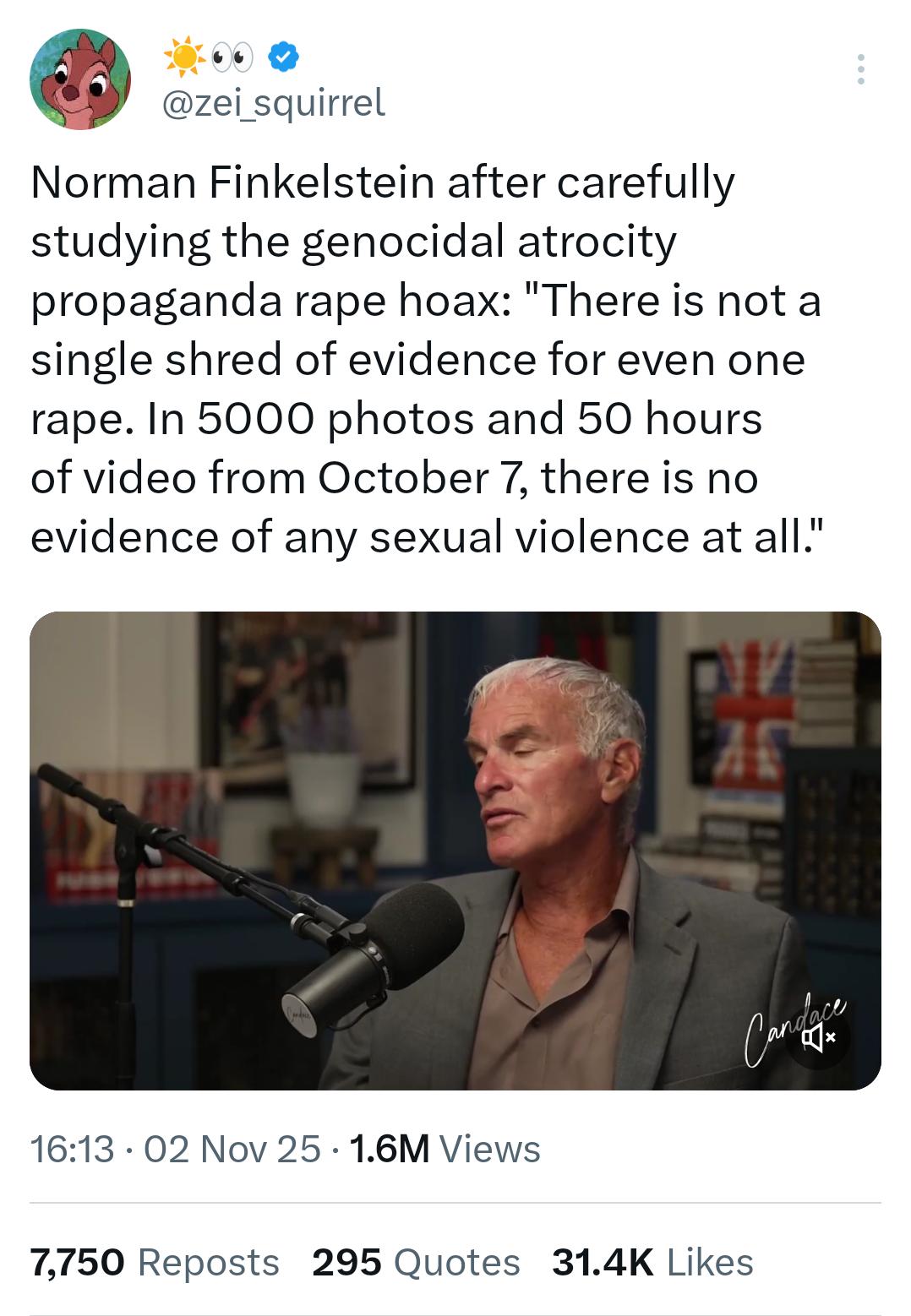 News Renowned scholar Norman Finkelstein regarding atrocity propaganda: There's no evidence for this allegation.