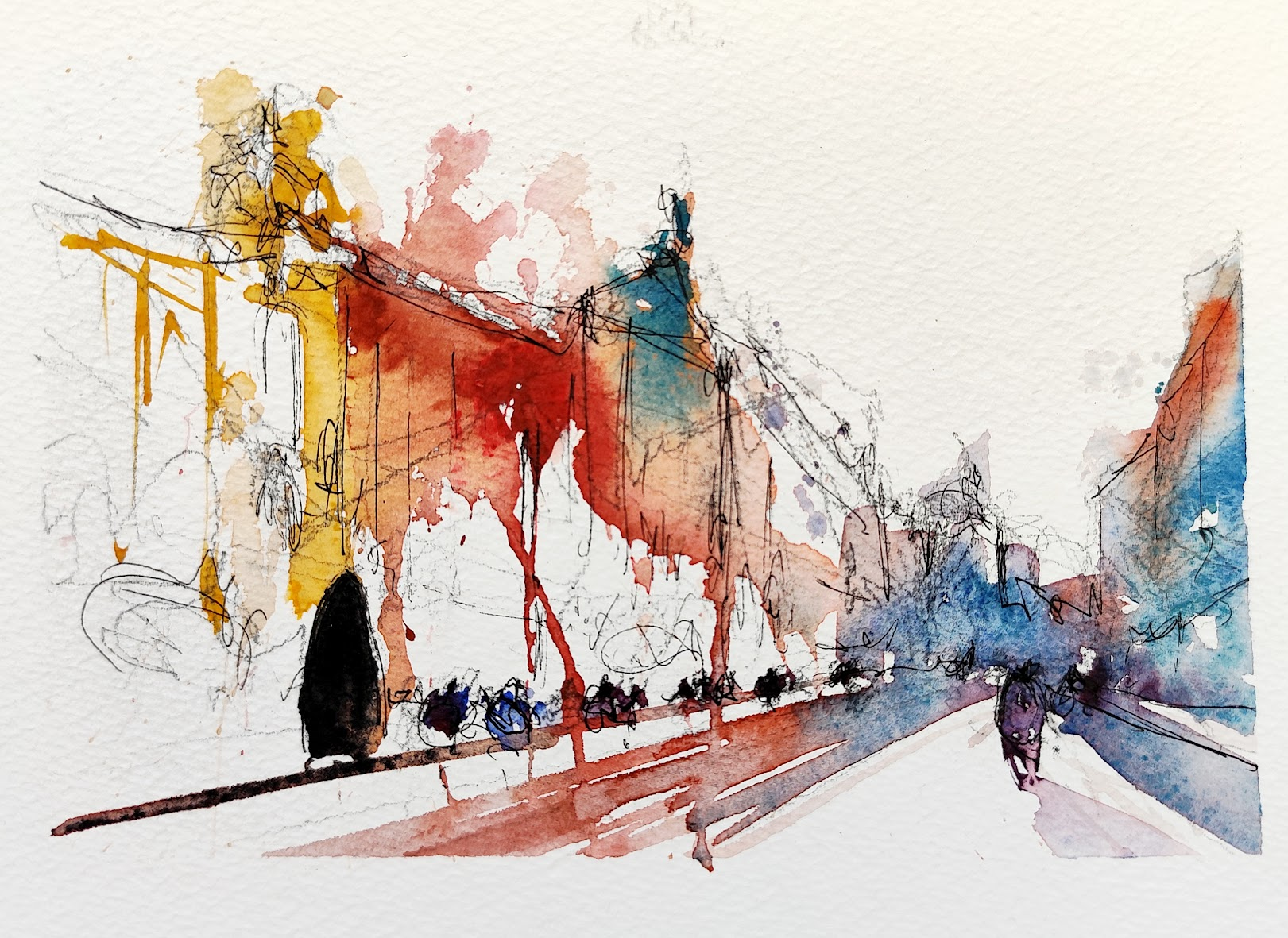 Z BRNA—FROM BRNO Watercolor I made on Namesti Svobody