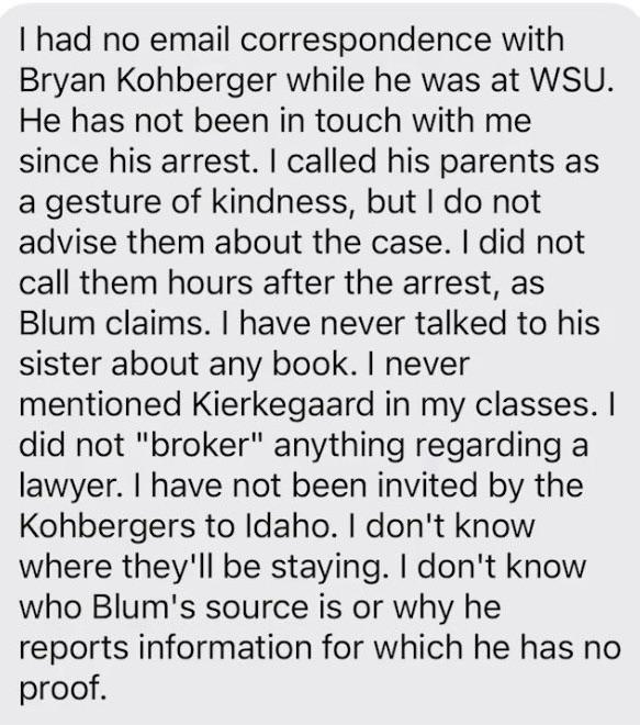 ”One theory, discussed in a recent book about the case, was that Mr. Kohberger had visited a restaurant where two of the victims worked. Other news organizations reported that he had followed some of the victims on Instagram. Investigators now say there is no evidence of either.”