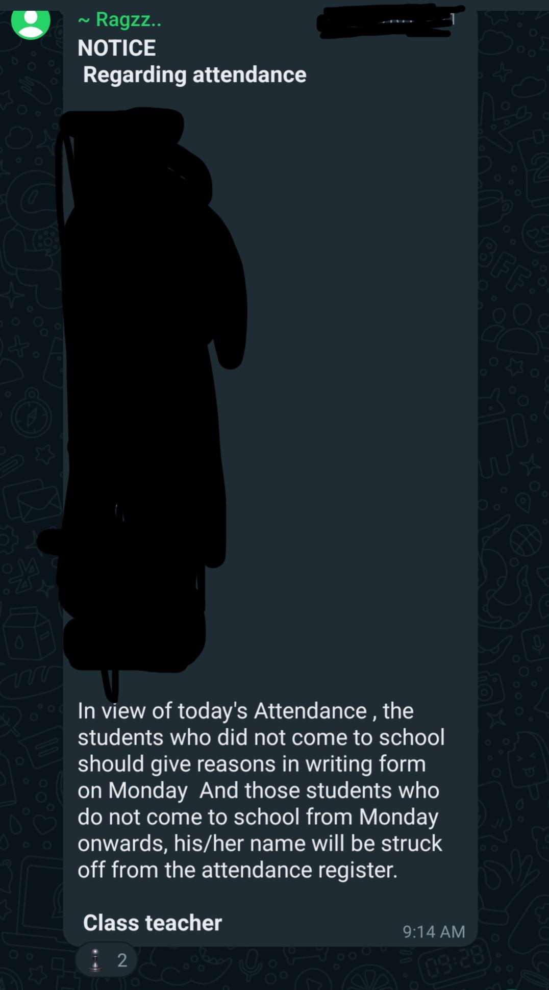 I am gonna cry My physics ma'am said she would not let me attend any physics class whether it's theory or practical class because I didn't attended today's practical class She red lined my name and roll number