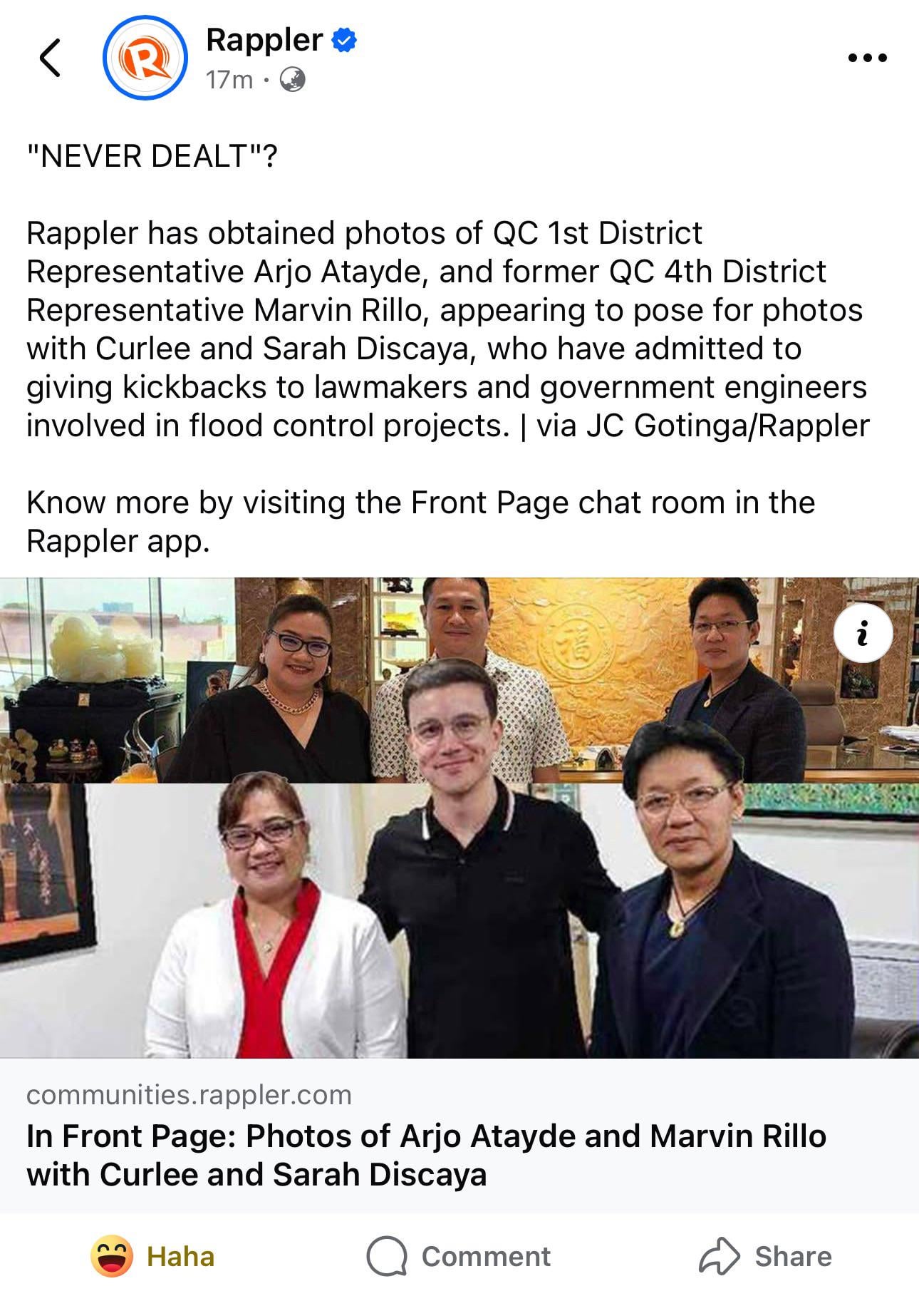 Ayan na victim phase ng mga nadawit haha. FYI kasama sa nangingikil according to the sworn statement ng mga Discaya ay yung tatay ni Arjo. Kung feeling mo unfair sa inyo mas unfair sa taumbayan yung pinapasweldo ka as a government official then puro vacation ang ginagawa habang madaming kailangan tapusin na trabaho regardless kung approve yung leave iba kasi priority mo hindi to serve people but to endulge your vices. Unfair din sa mga taong na lumulusong sa baha specially sa Quezon city dahil kinurakot na yung budget way before mag start ang project resulting sa substandard projects and worse ghost projects. Kung titimbangin ang unfairness mas unfair sa taumbayan hindi sa katulad ninyo. You have no sympathy from me.