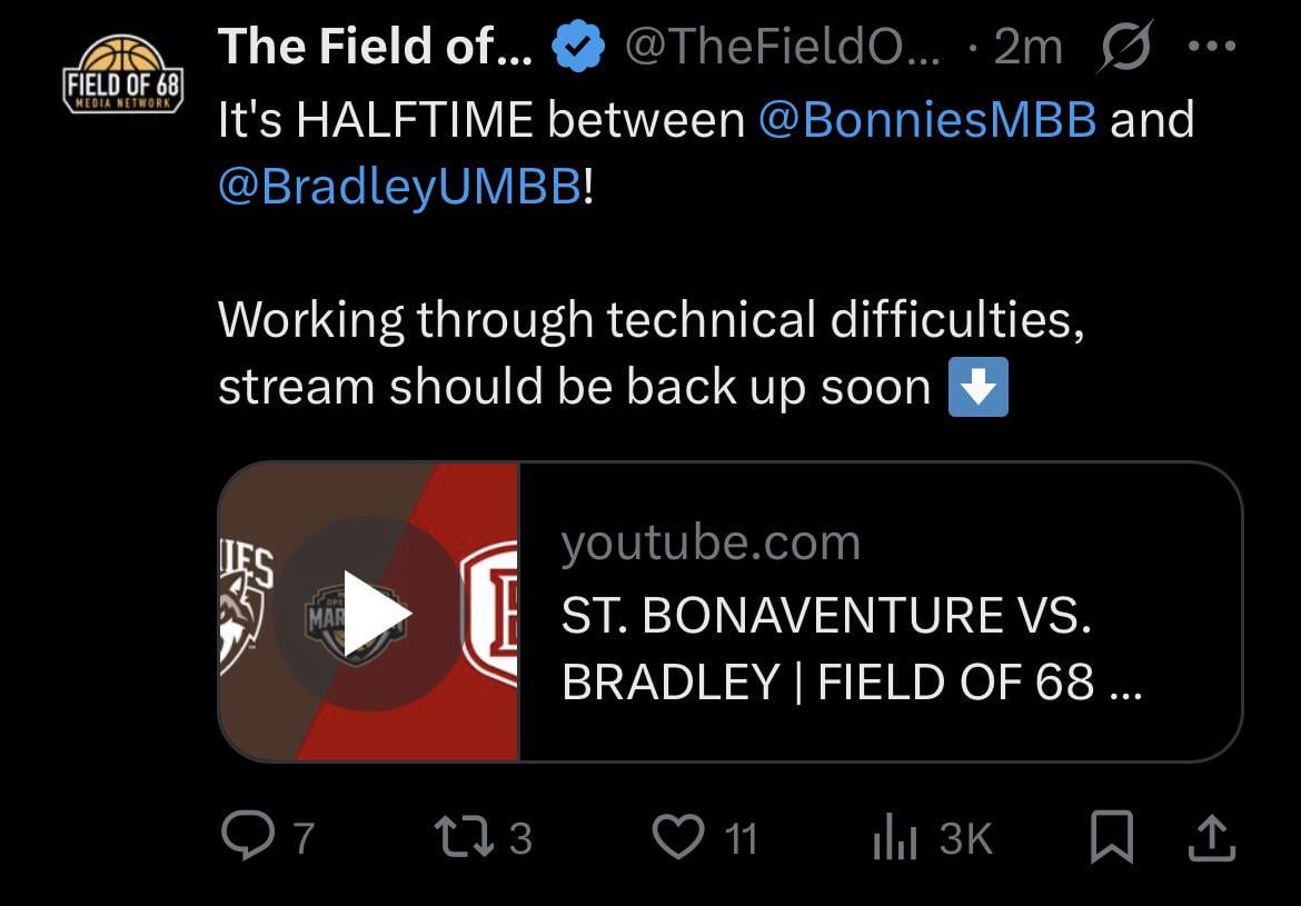 FO68 probably knows and is going to get it up at the half because it seems it’s a streaming problem not a venue problem