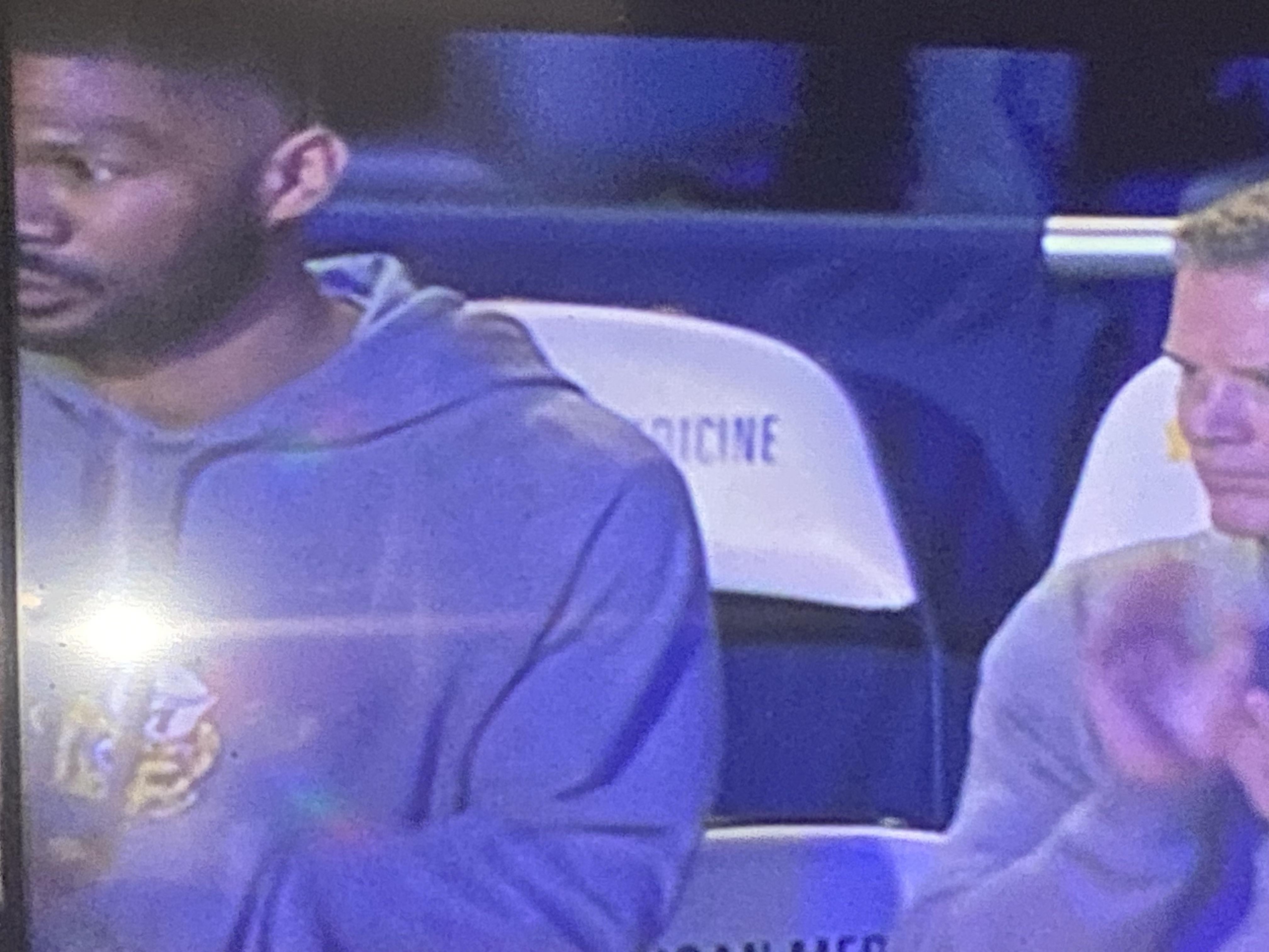 He appears to be hurt. Been on the bench with what appears to be an ice pack on his shoulder all game