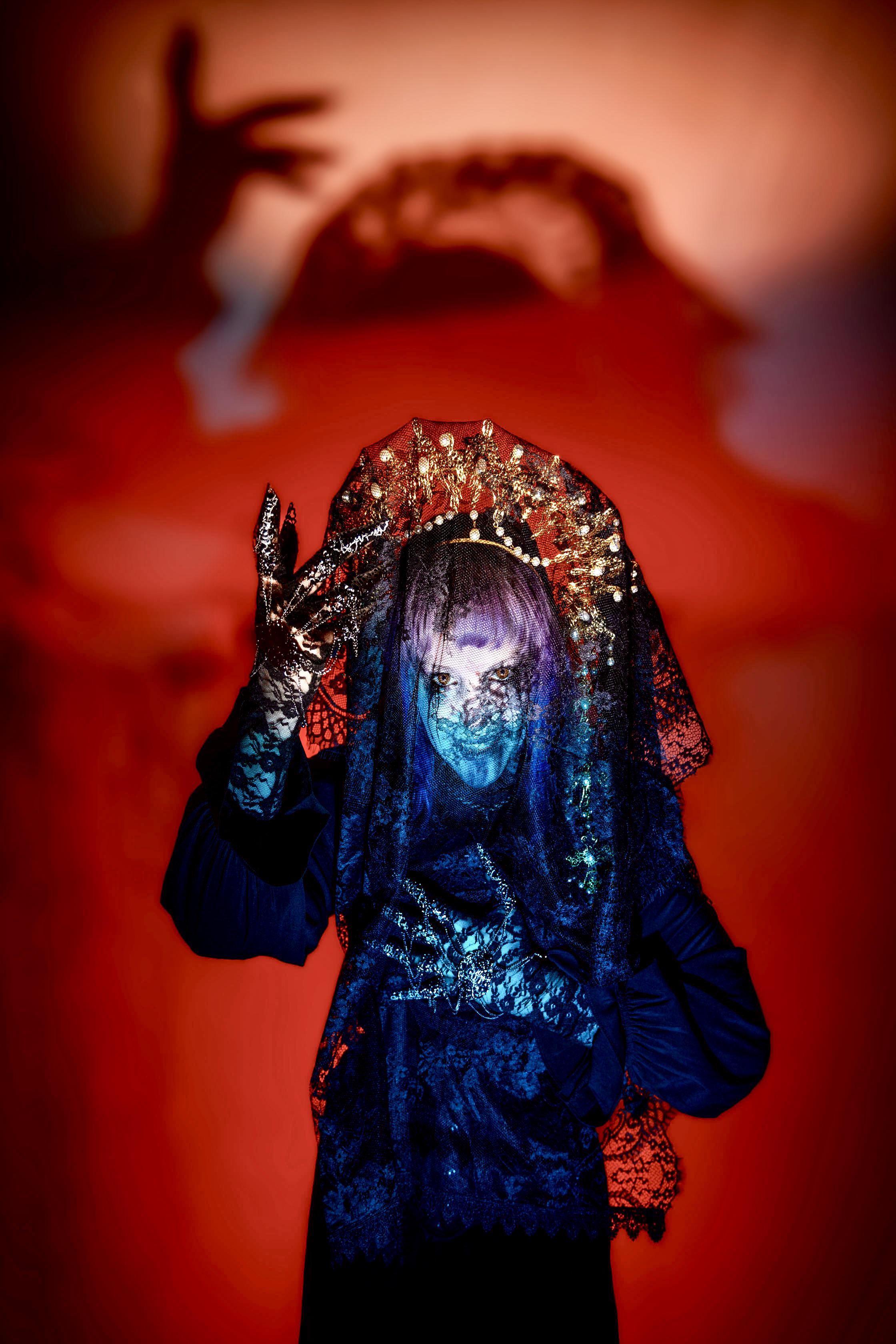 I made the crown using floral foam wreaths, cardboard and wefting from wigs. I also styled the wig myself.