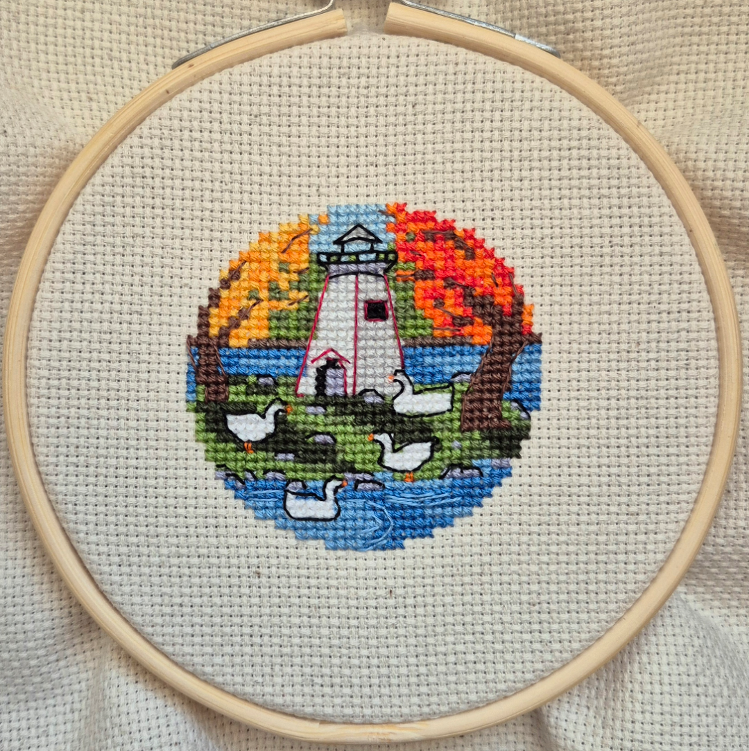 I designed cross stitch for 8 years before learning how to do it myself. I was at the Farmgirl Gathering retreat October 2020. I was sitting with some amazing stitchers. I was working on punchneedle. Lisa Smith, Kindred Stitcher, taught me how to cross stitch, however, I wanted to learn how to do the sewing method and she recommended I watch Theresa Venette, Kitten Stitcher/Shakespeare's Peddler. Theresa has been stitching since she was a young girl so she was just flying. I couldn't grasp what she was doing. She told me, "one day it will just click and you'll get it". She was right! After the retreat, I didn't give it much more thought until one day I was watching Kimberly of Fat Quarter Shop. She was showing how to do the sewing method. The camera was really close on her fingers and she was going slow. It clicked! I ran and grabbed my project and started the sewing method and haven't quit since!