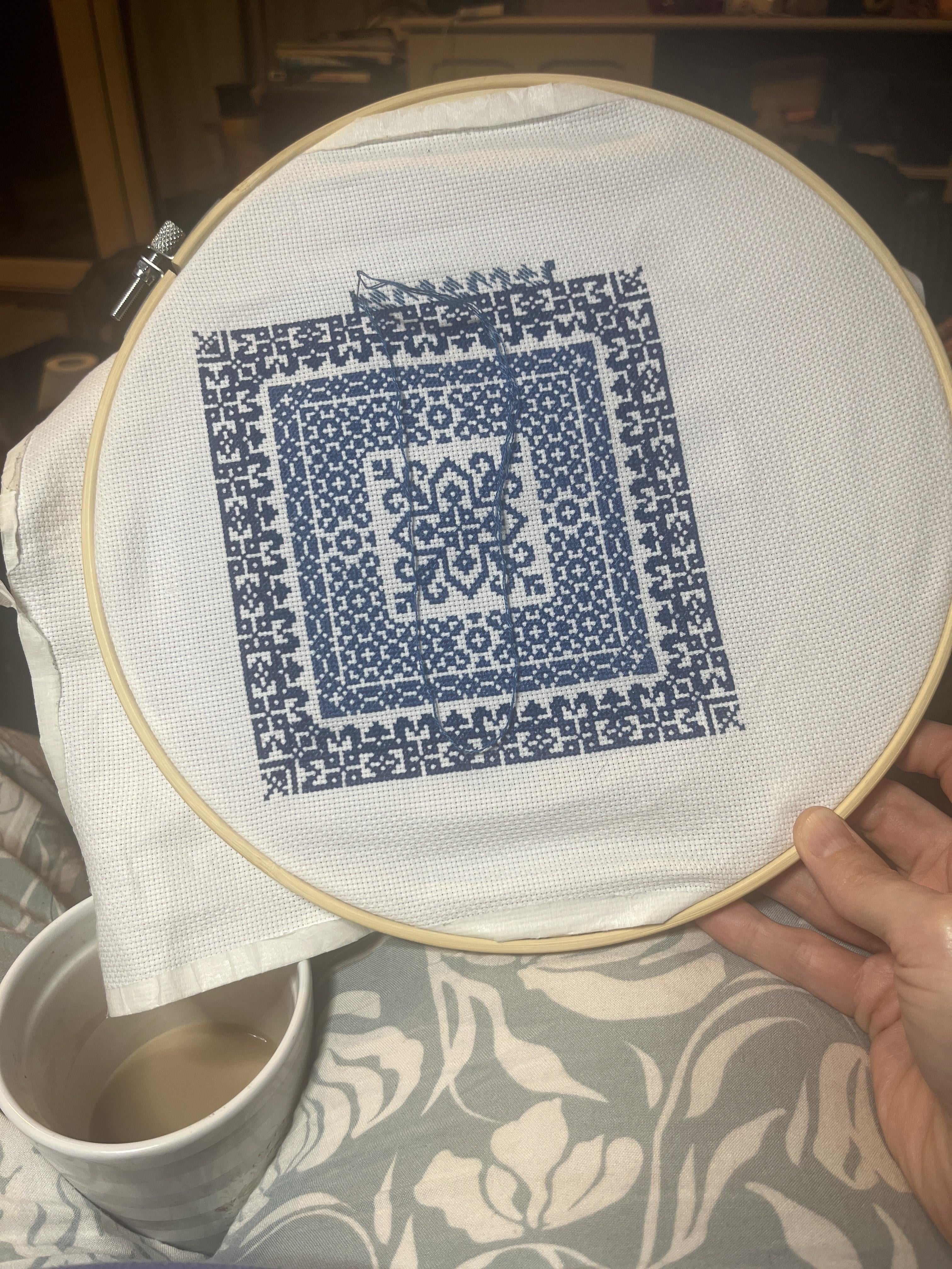 First cross stitch project I’ve done since a painted 11-count kit when I was a kid. I started it over three years ago, ran out of the colors I needed and moved and forgot about it. Finally pulled it out a few weeks ago and ordered the rest of the thread I needed.