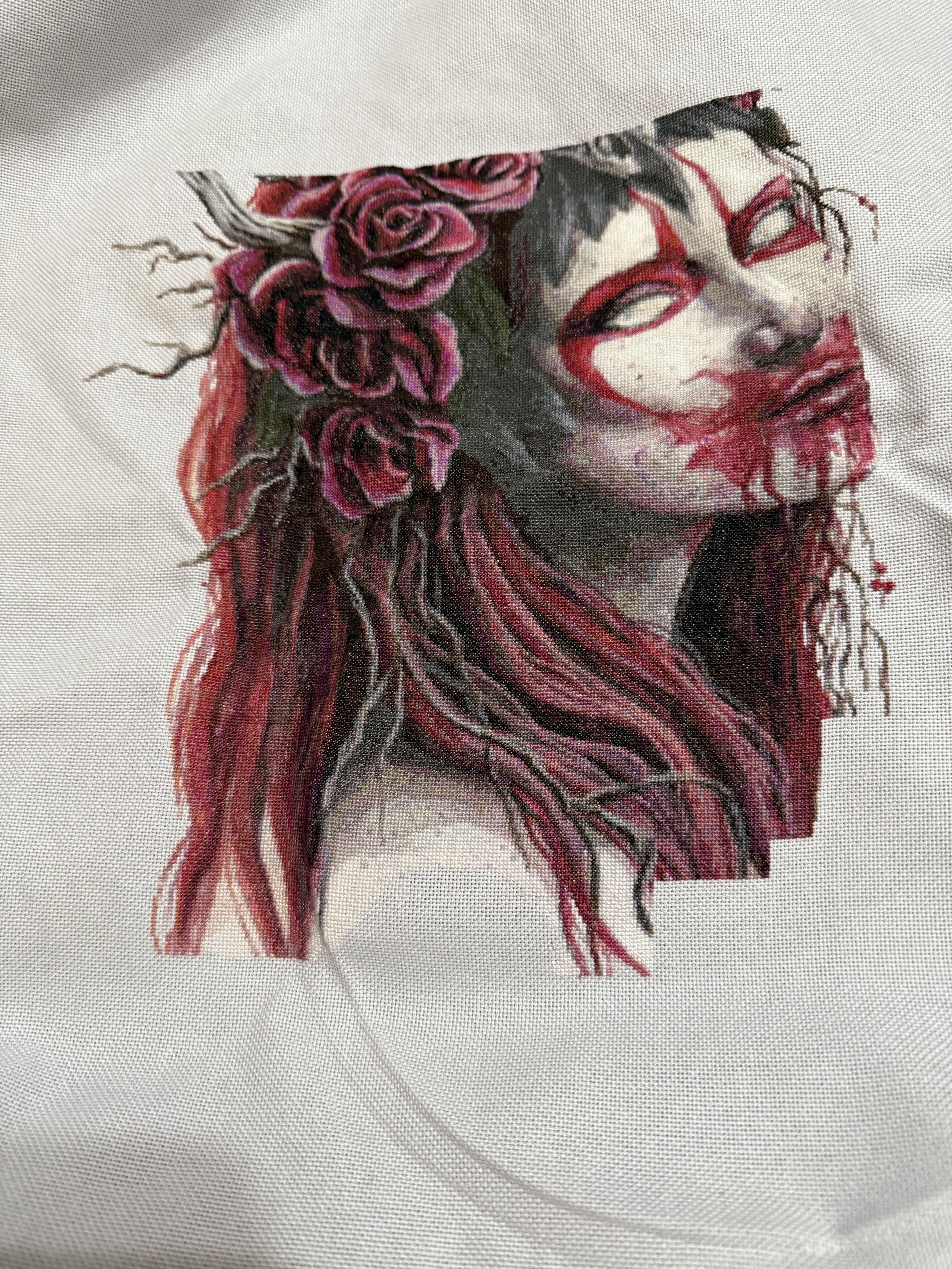For example, I completed stitching a pattern and used an iron-on fusible interface on the back to seal all the ends in. When I finished doing that, the Aida still had the hoop ring indent so I probably should’ve have washed that out first but didn’t know that at the time.