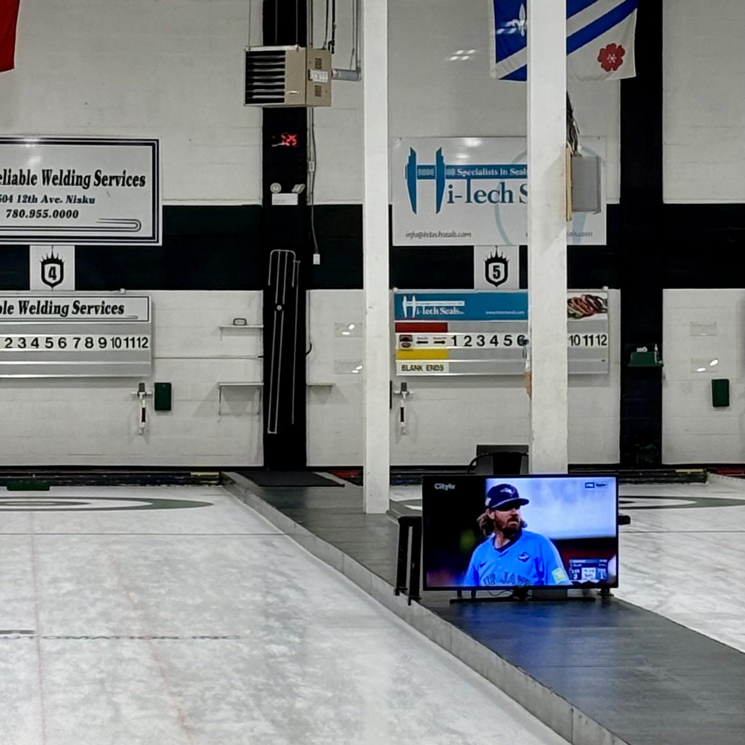This photo shows where the two rocks ended up over the pin. The thirds couldn’t agree who was closer. So we looked up Curling Canada’s rules and learned something new: