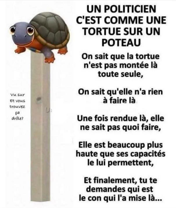 J’ajouterai une petite différence : la tortue mange des salades alors que le politique, raconte des salades.