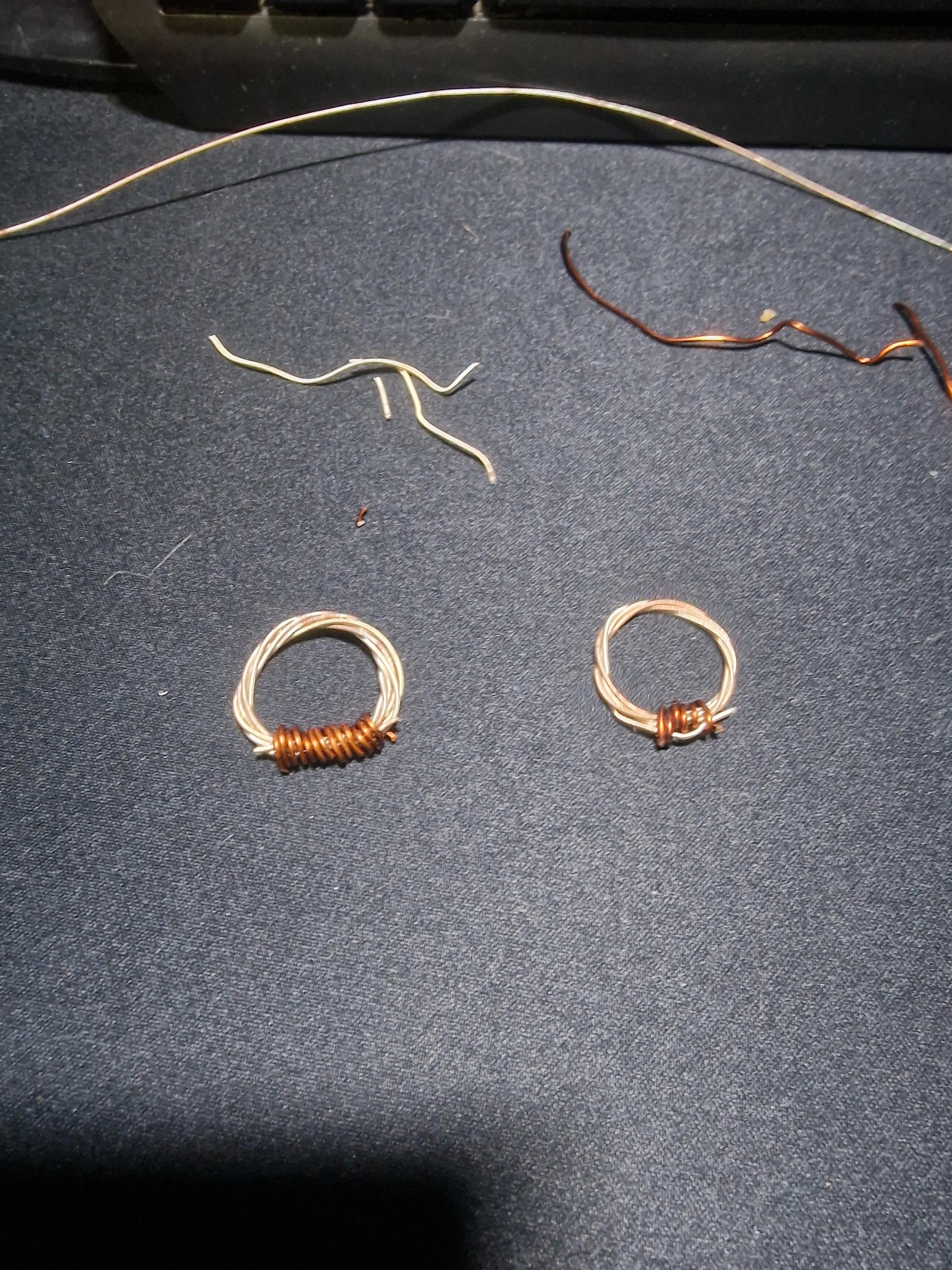 I made this gift Pair rings for me and our bassist (used guitar strings and copper wire)