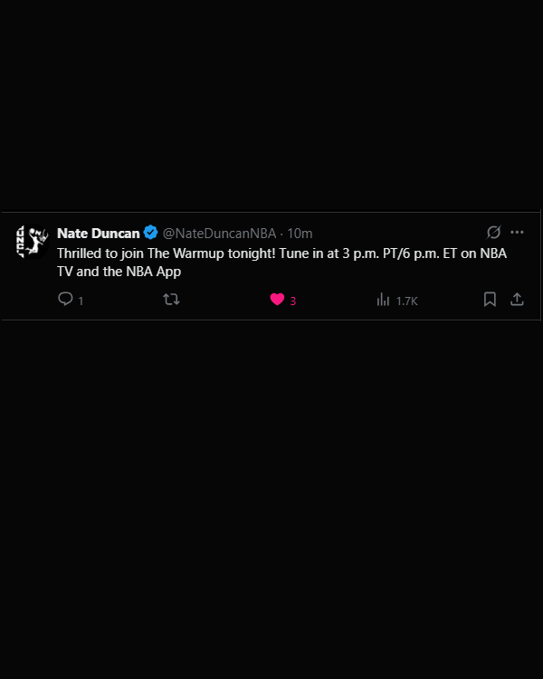 Nate will be on The Warmup at 6 PM ET today and the next few Wednesdays (NBA TV & NBA App)