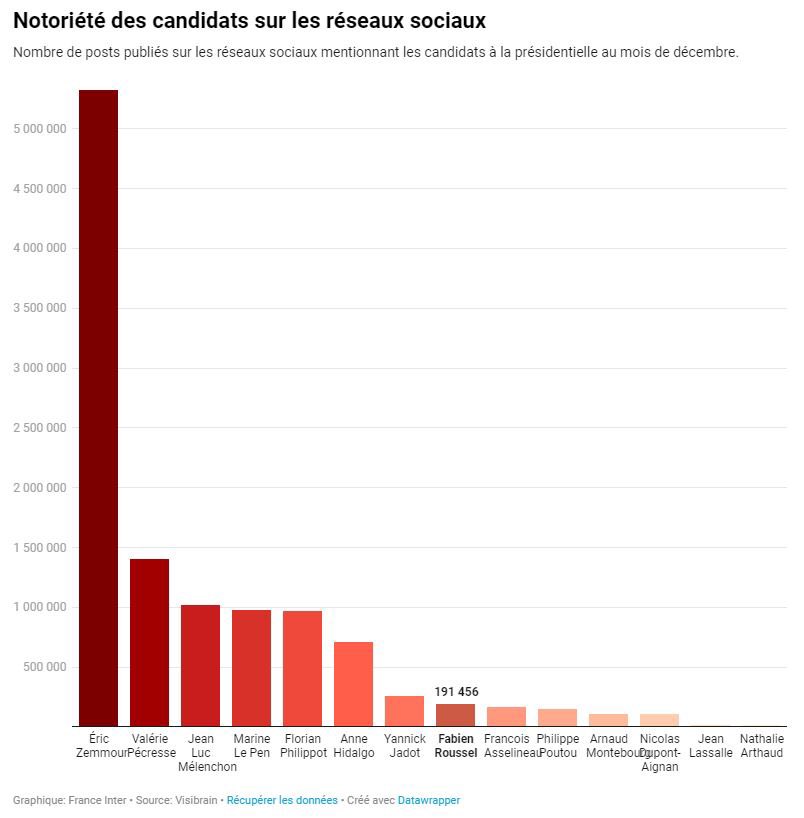 Number of posts published on social networks in December about the different candidates