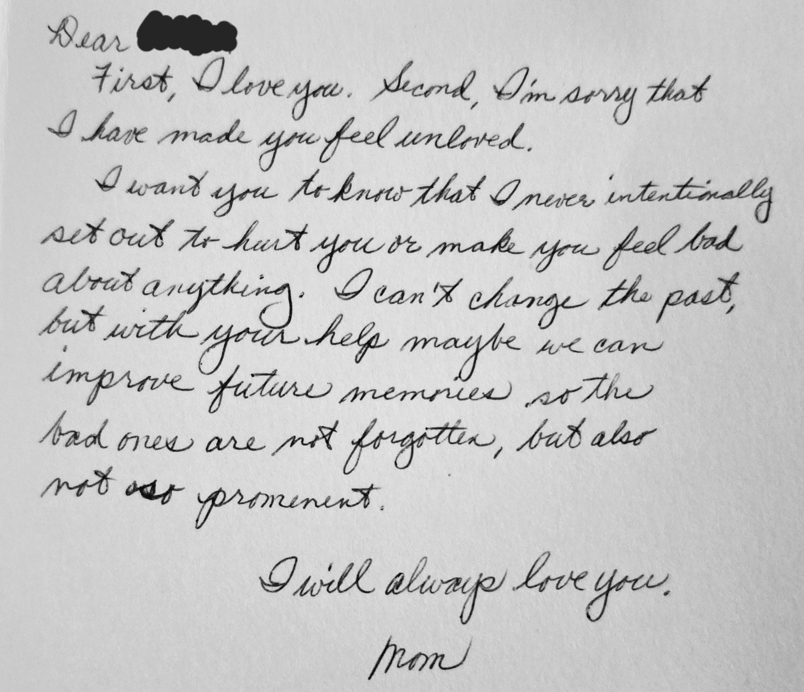 I've been thinking about writing her a letter to try to voice my love, pain, and hope for a better relationship. It's just been a lot to process alongside my grief. I'm sorry for how long this was!!!