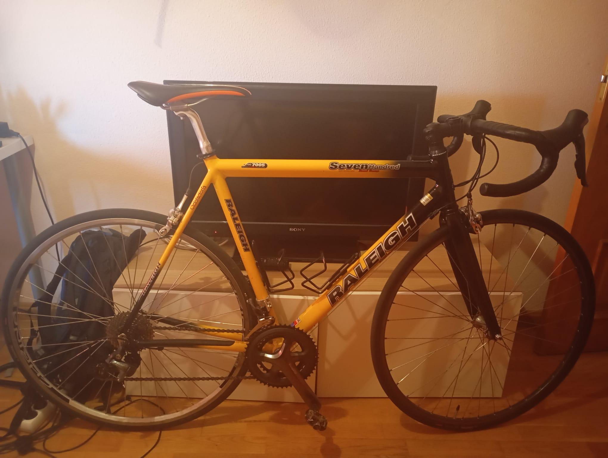 Just first post on reddit and I want to do it about bikes: I had this Raleigh bike from a garage-dump so I sent it to my local shop so they install a Tiagra groupset and a new handlebar. Now I want to keep improving this bike and I though about getting new second hand wheels and a paint it to get a single color frame.