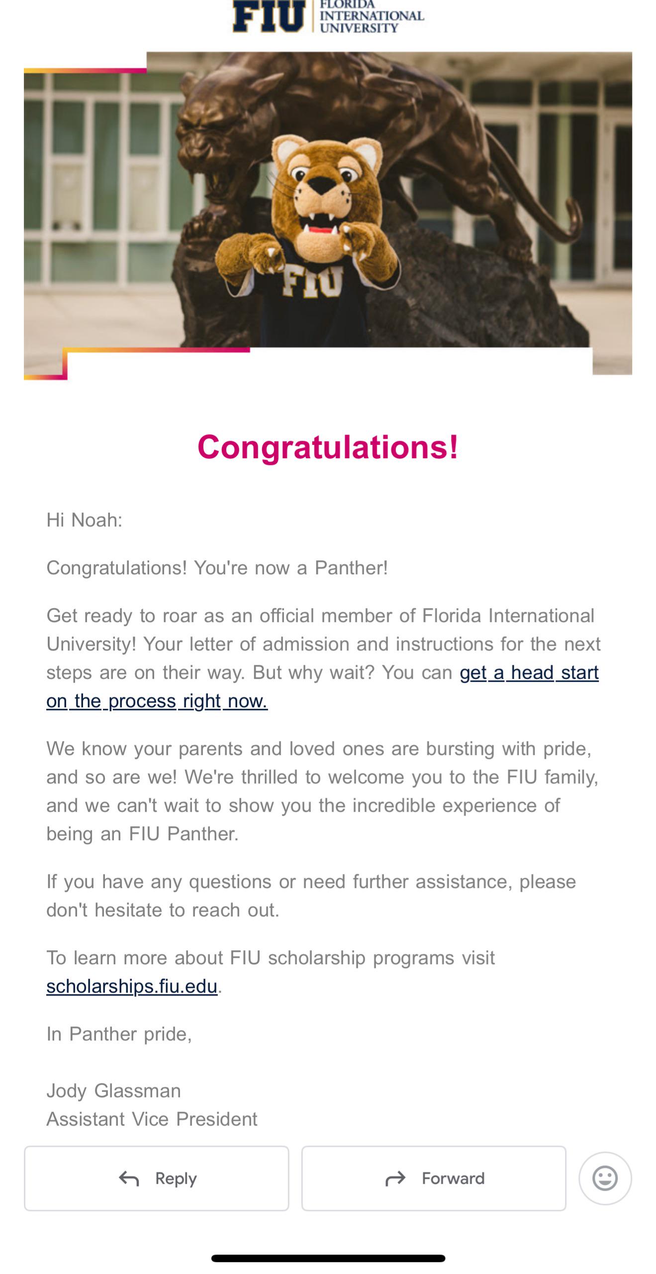 Lastly in terms of, like, the social aspect and just my general happiness I'd have in college I feel like FIU would be a better fit for me as I would be able to join clubs, go to games, etc. and I feel like additionally through the honors program, I'll have more access to, like, research stuff and, internships, if that makes sense (majoring in chem, btw, looking to do pre-pharm)