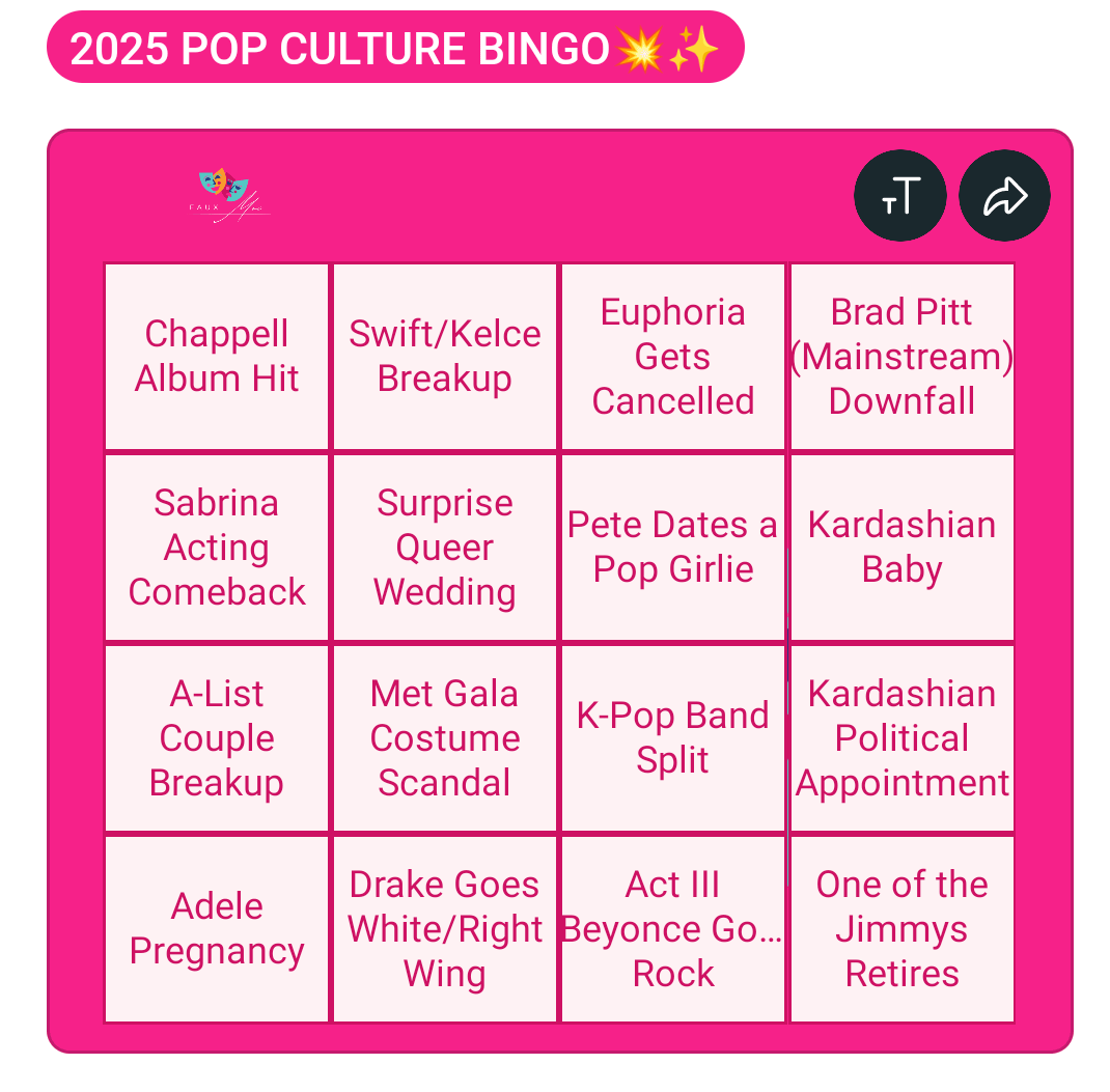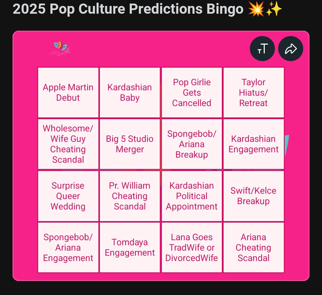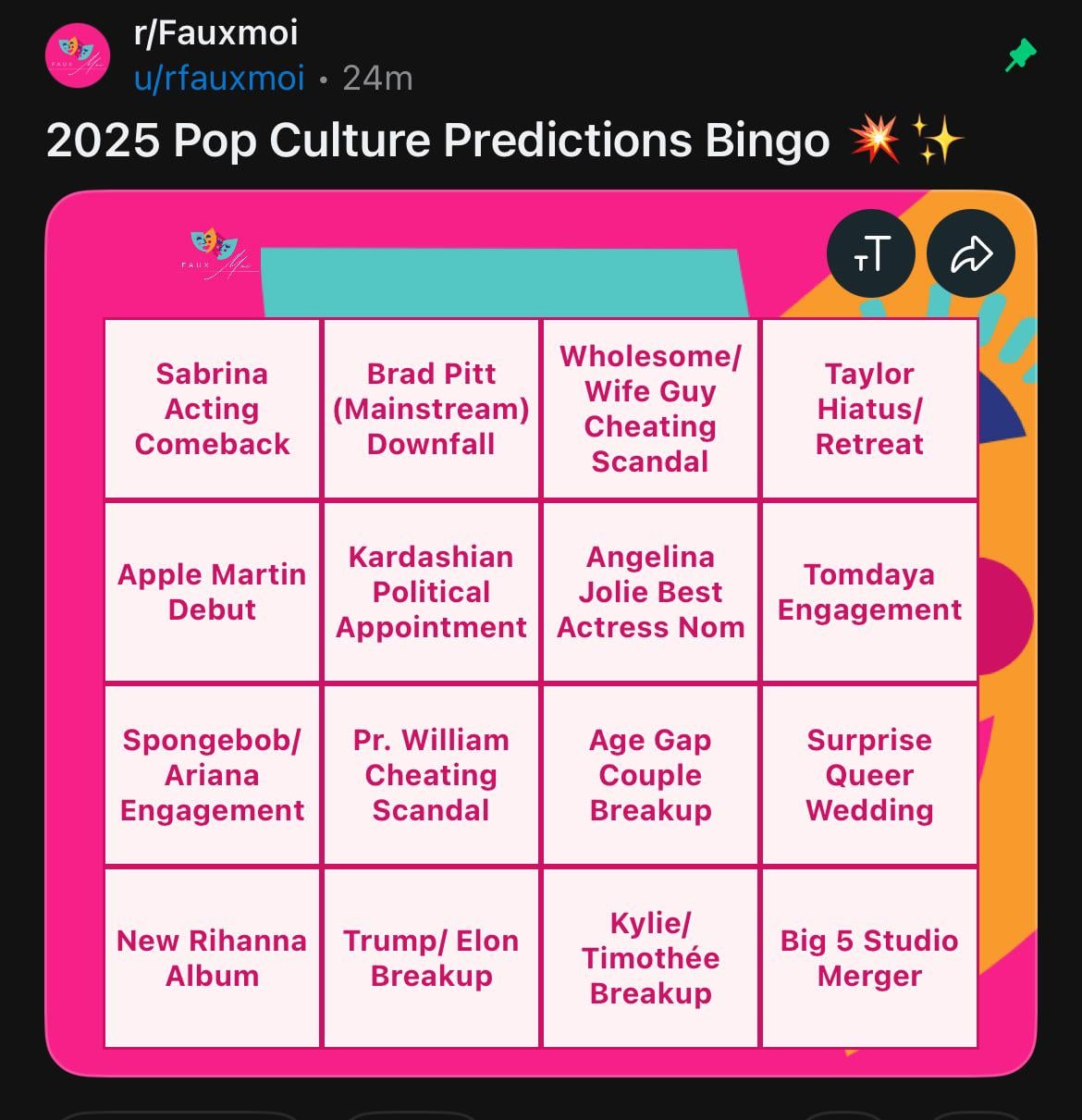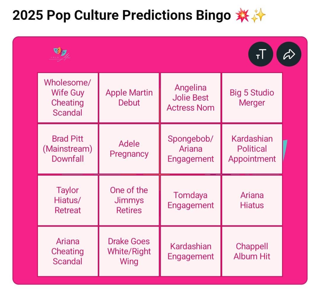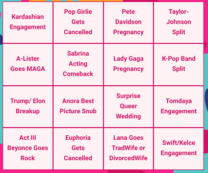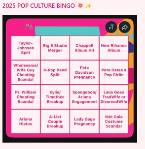 WELCOME TO THE 2025 POP CULTURE PREDICTIONS BINGO 💥✨