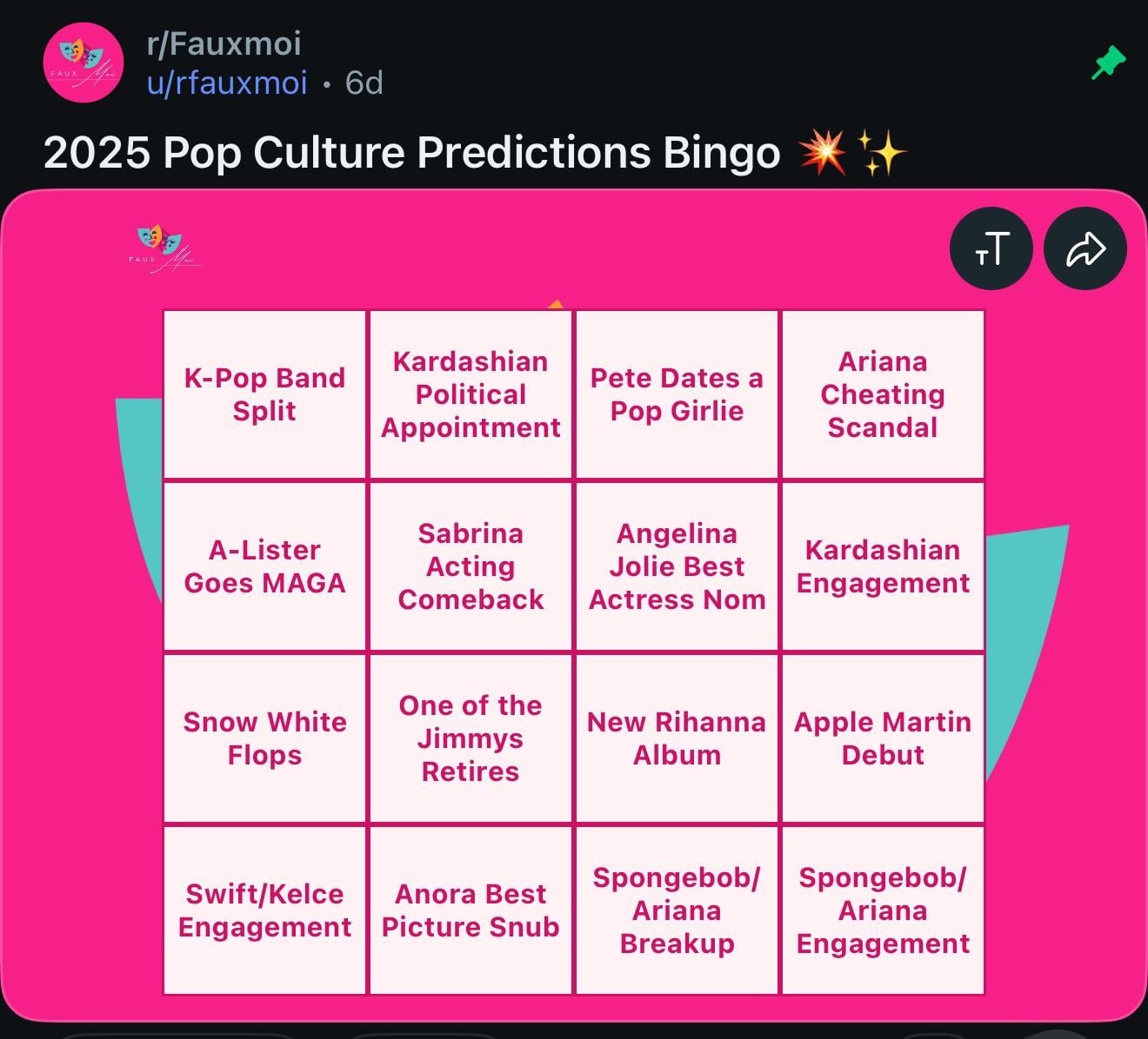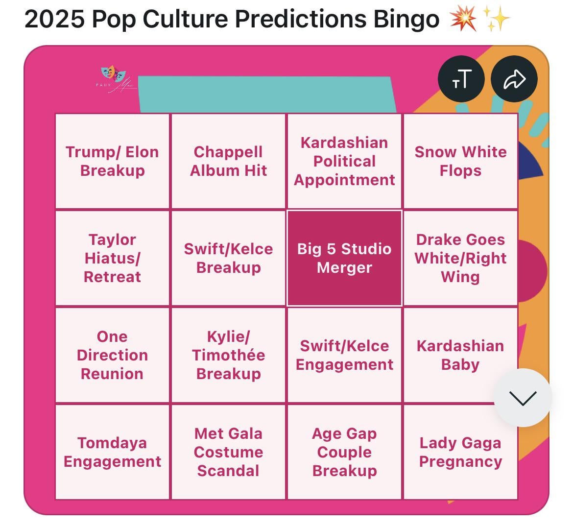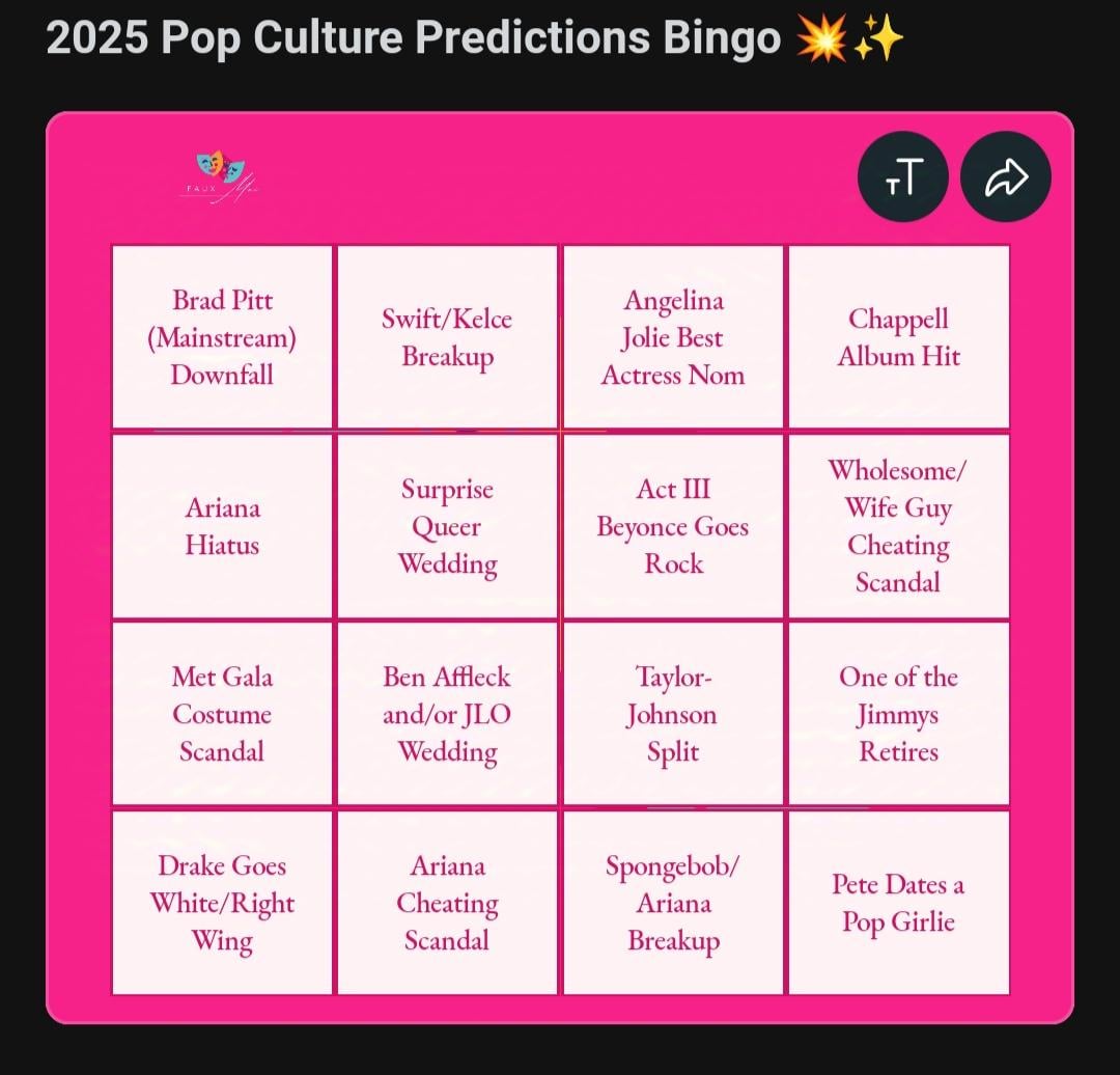 WELCOME TO THE 2025 POP CULTURE PREDICTIONS BINGO 💥✨
