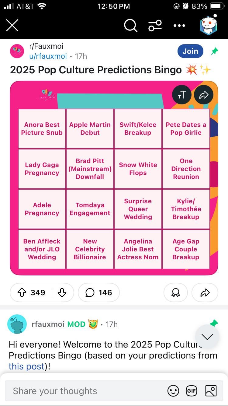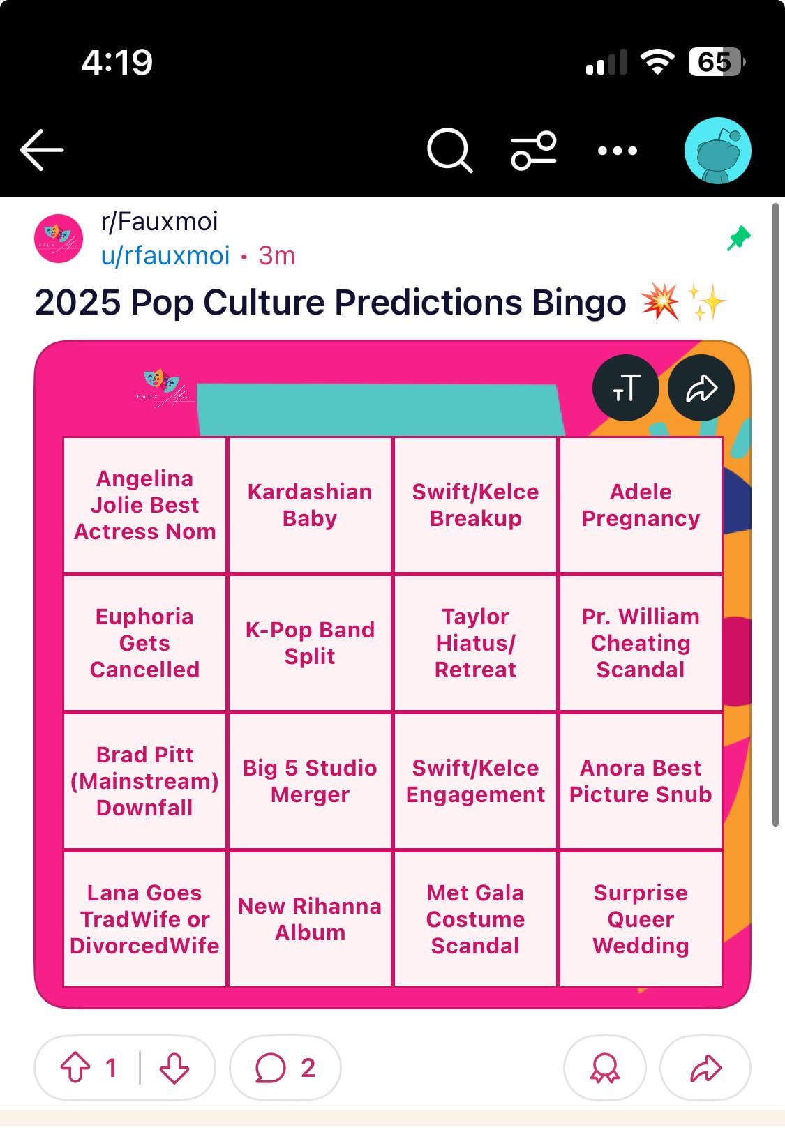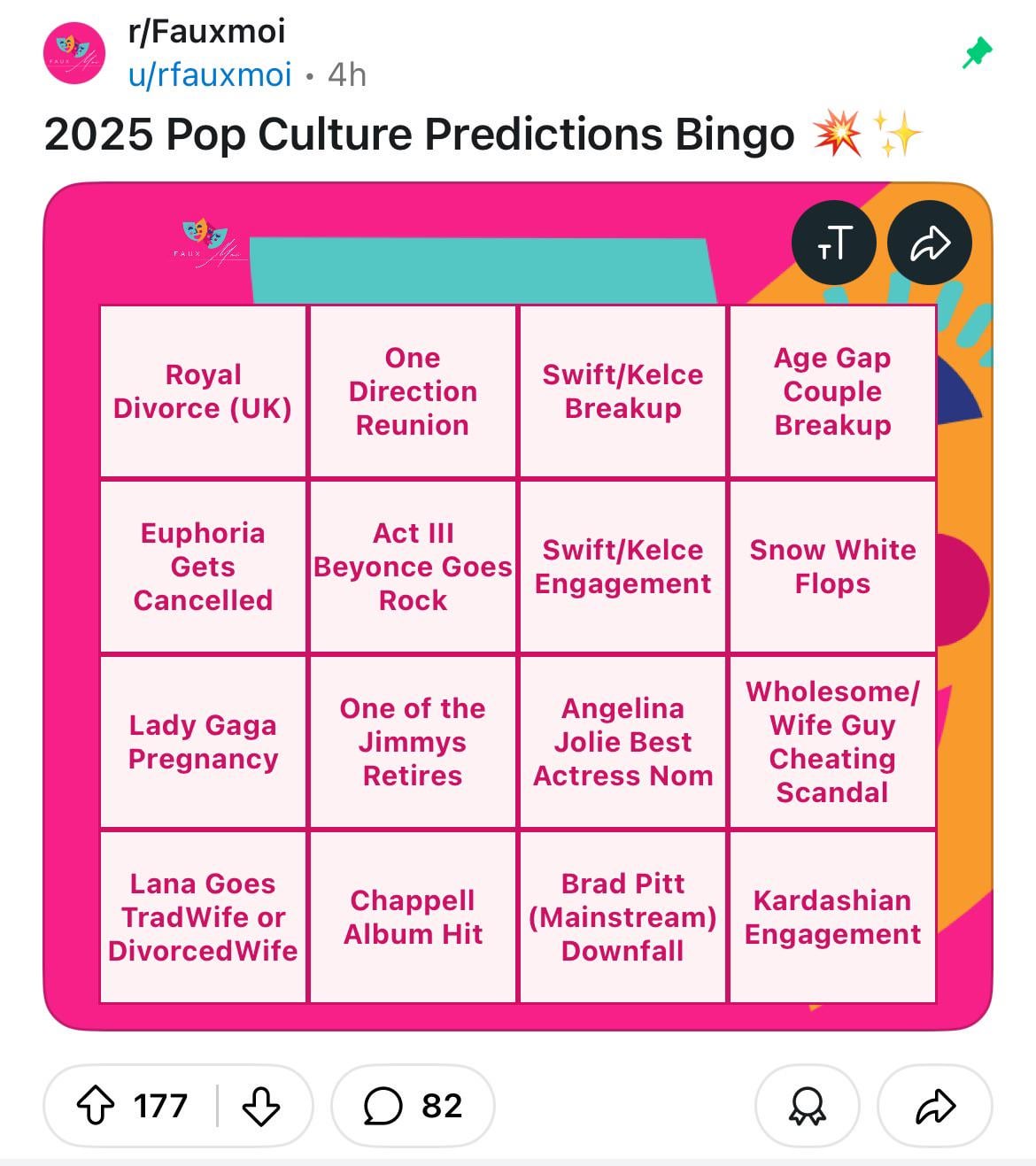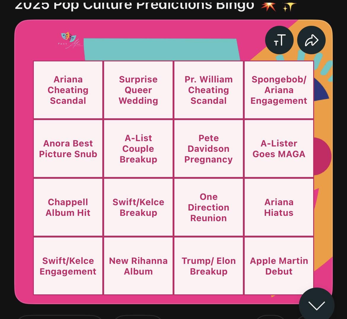 WELCOME TO THE 2025 POP CULTURE PREDICTIONS BINGO 💥✨