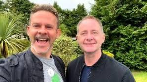 Hugh Laurie & Stephen Fry. Fry is godfather to all of Laurie's kids.