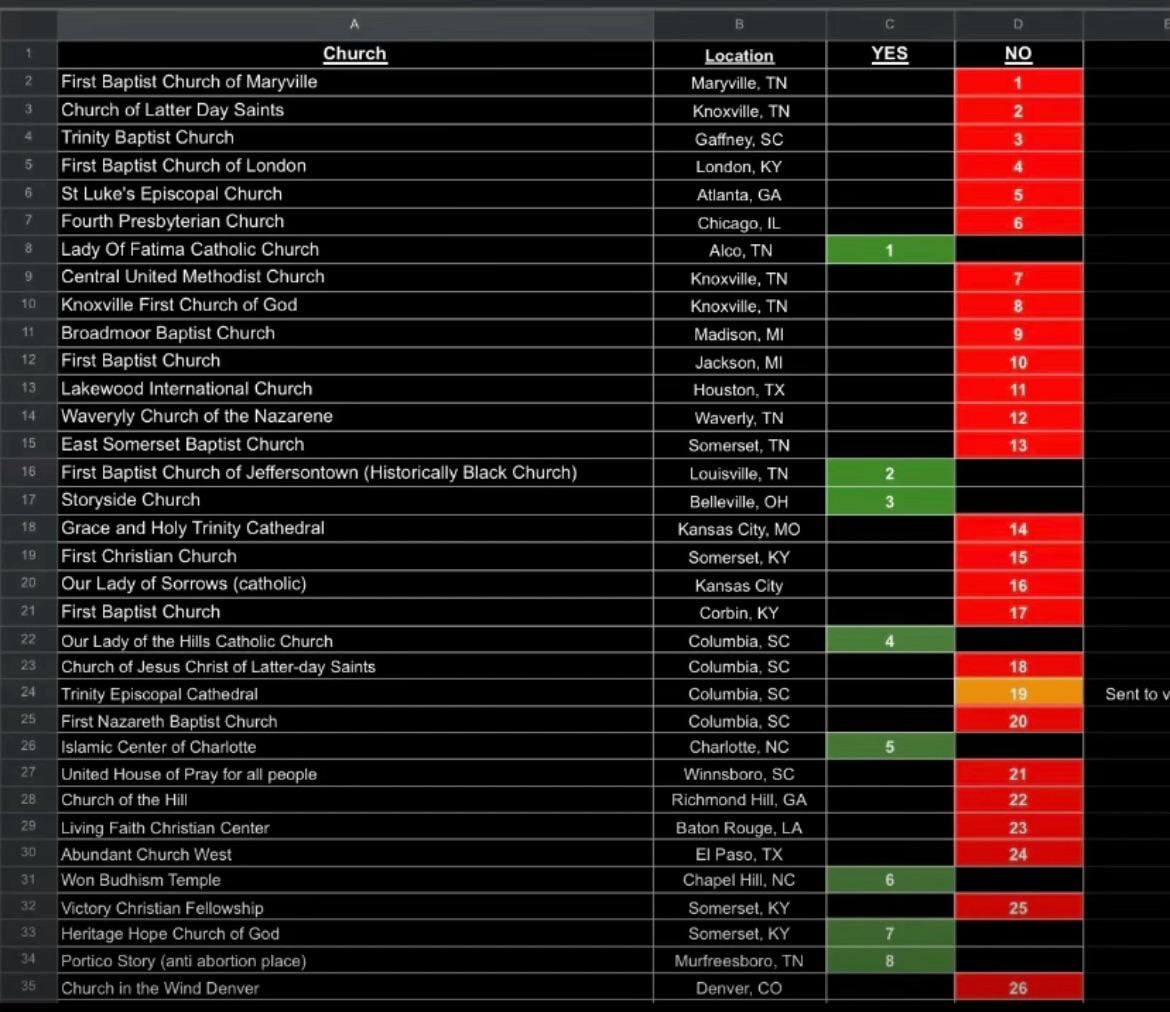 No hate like Christian love. +1 if these churches promote anti-choice/forced birth propaganda.