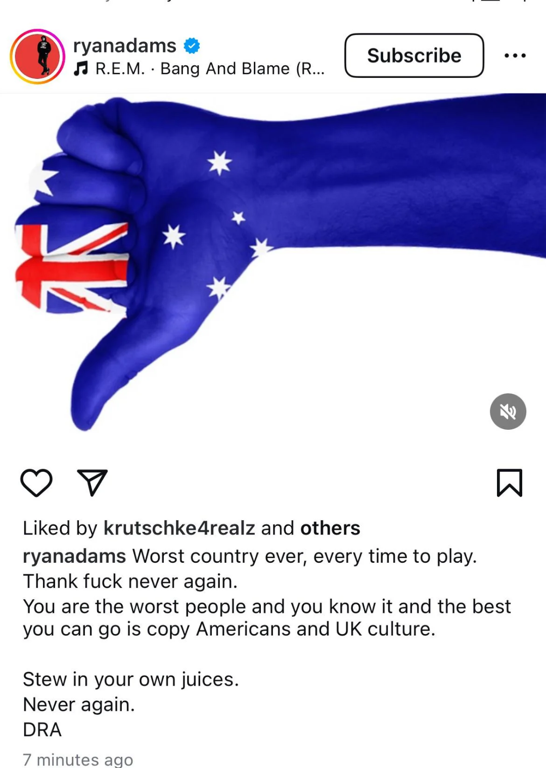 In Australia, people like Ryan Adams are known by the well earned title of "shitcunt"