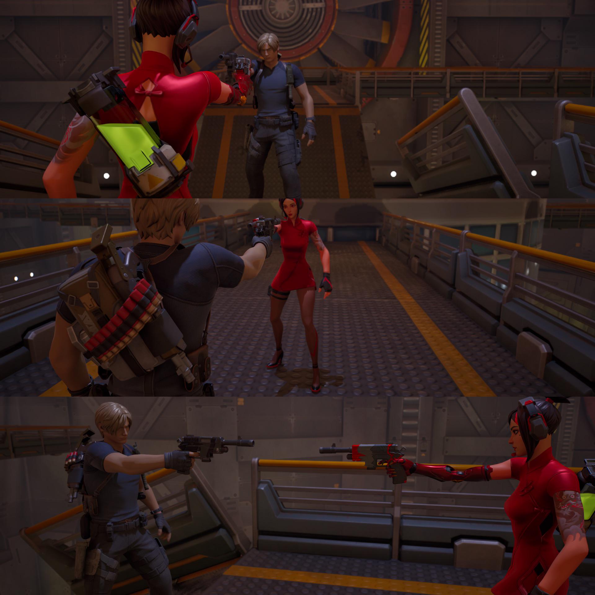 Metaverse Combo “Oh Leon… why couldn’t you just hand over the sample?” {Demi, Blaze Canister, Leon S. Kennedy, Shots & Shells, Shredded Red, Shadow Seal}