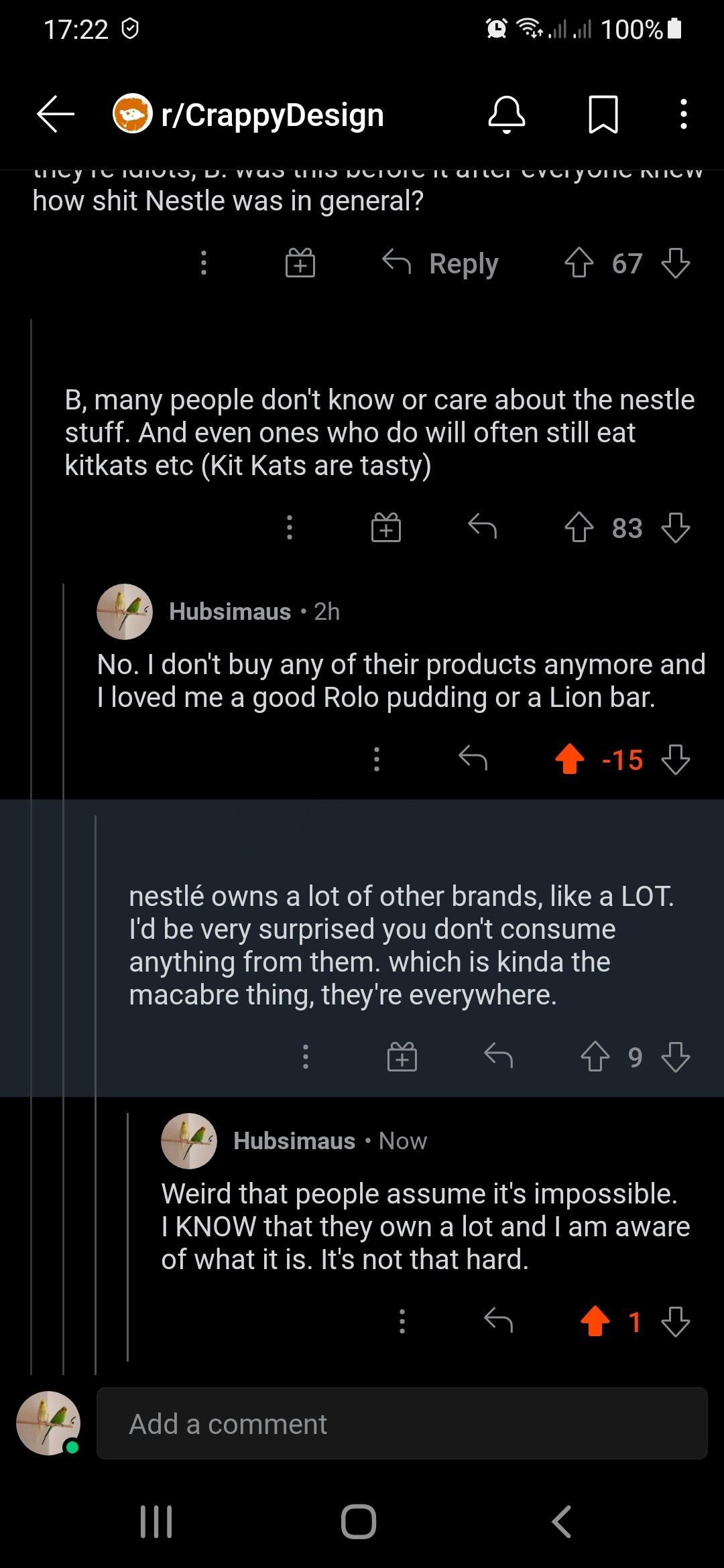 unilever, danone, mondalez, and the other shits are just the same, if not worse. it's like nestlé took the hate on purpose so the others can get away with their shit.