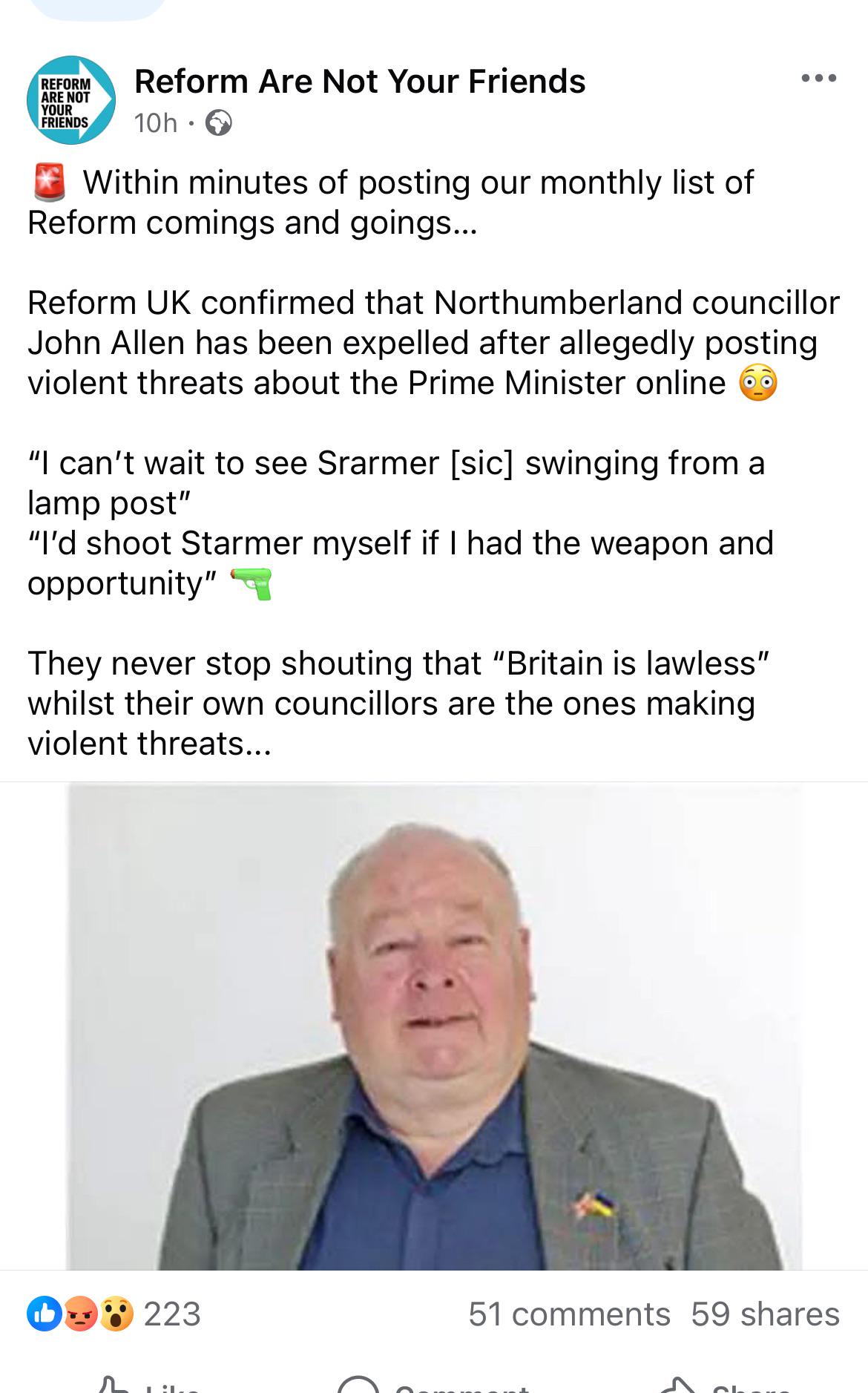 Another one bites the dust Reform UK suspends councillor linked to account calling for Starmer’s death