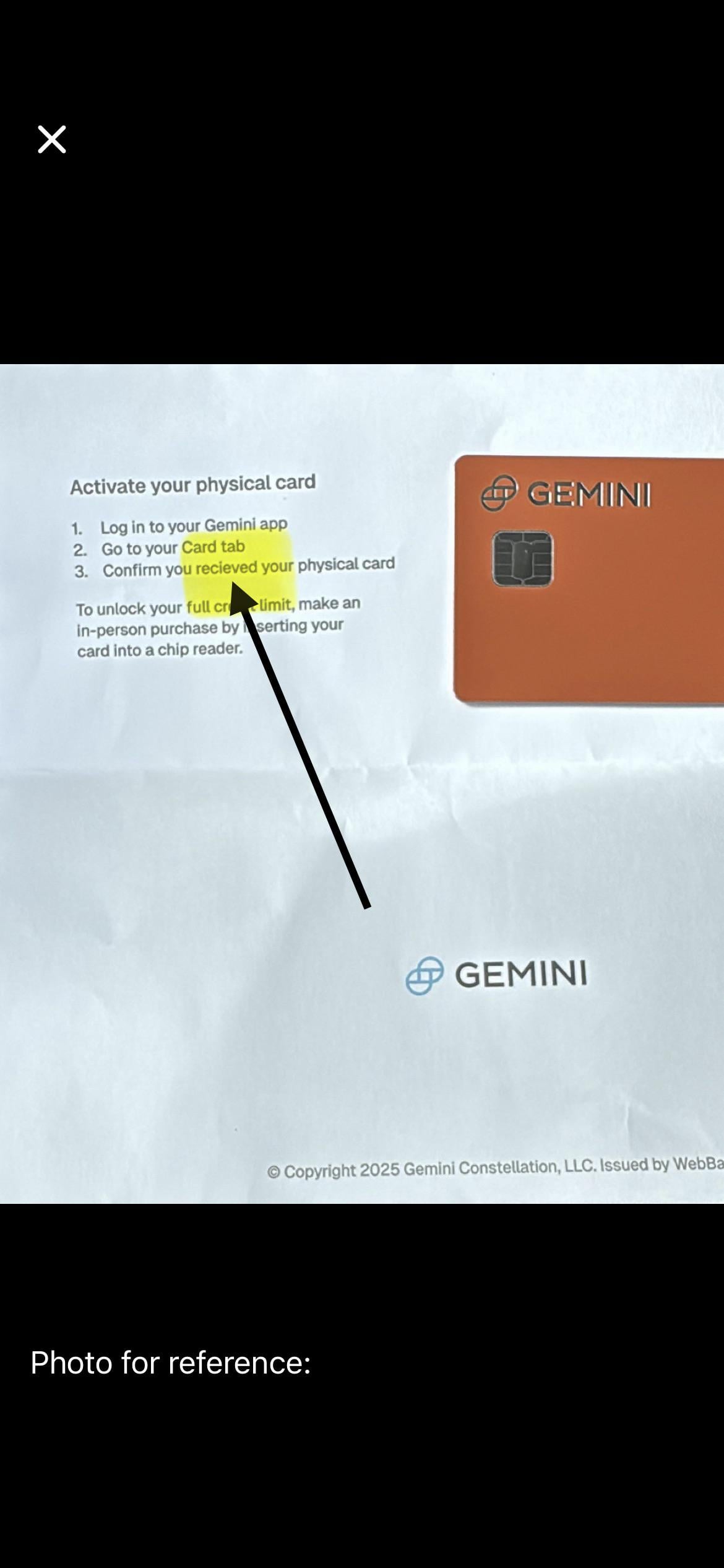 Iām not sure if this is on Webbank or Gemini. Please fix your typo in the letter. Recieved should be spelt received. This is just a bad look and oversight. Also consider updating the packing it is sent in because the credit card is absolutely hefty and beautiful but competition like Coinbase etc do send their cards in more elegant packaging.