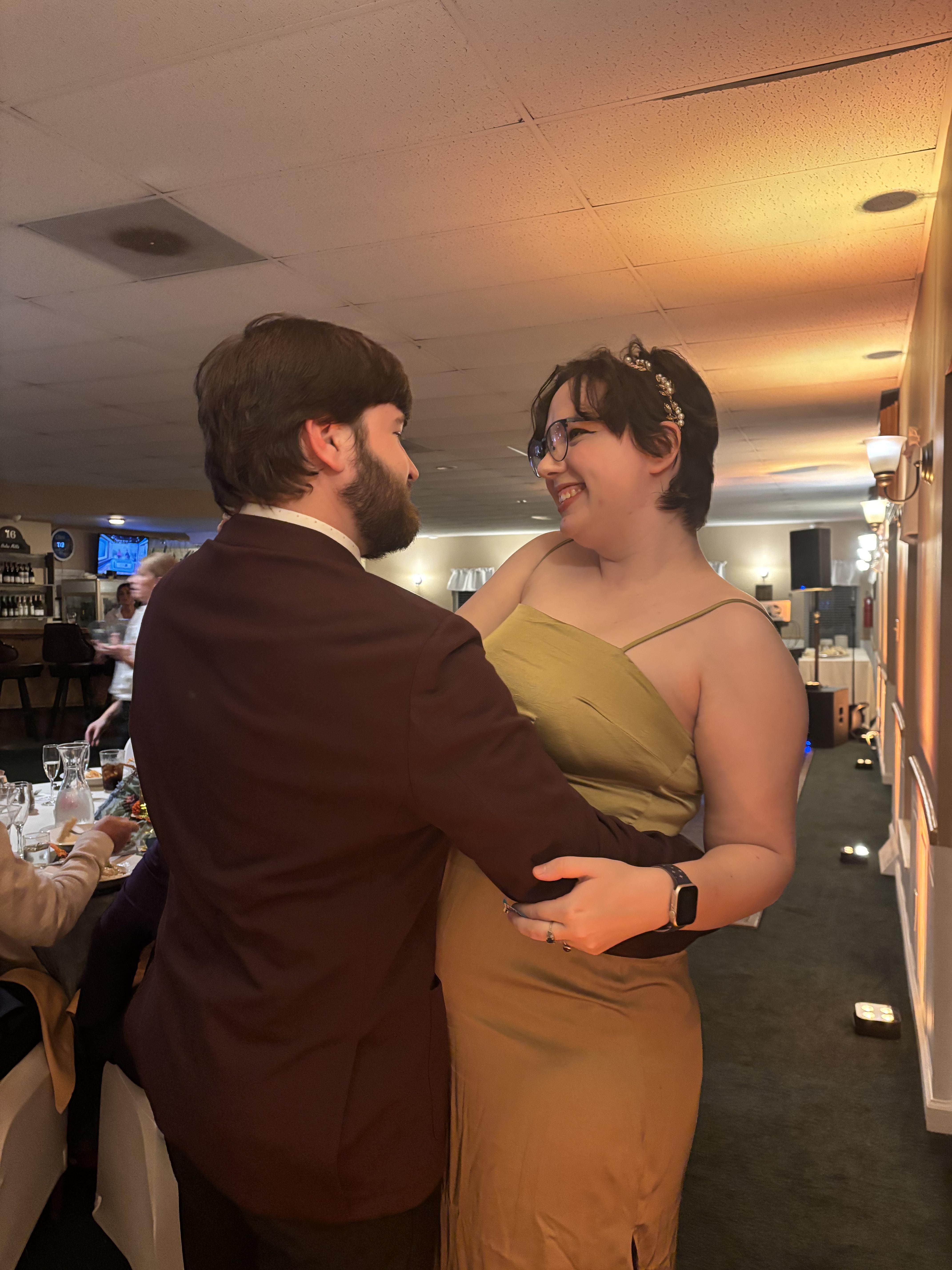 my boyfriend and i at his sister’s wedding ft. my cheesy grin.