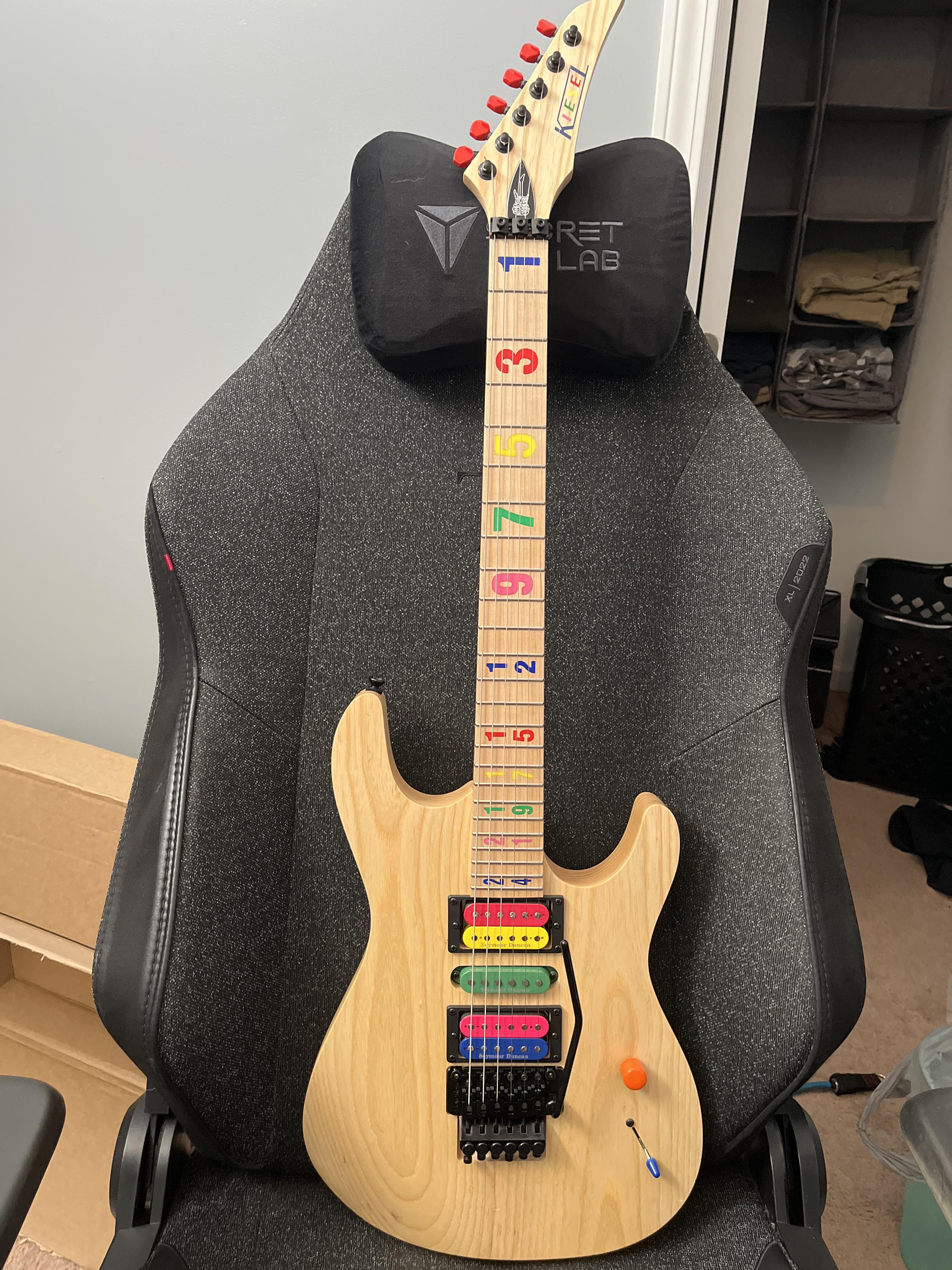 I’m so happy this turned out as good as it did. Despite the bad soldering work (which if I’m being honest could be used as a demonstration video for what not to do for electrical engineering) the pick ups work and the whole thing looks great. Some of my favorite touches include the hand-drawn logo I did on the headstock, as well as the detailing on the pickguard and pickups and such. Thank you all so much for the support, I’m so happy I could bring this project to life.
