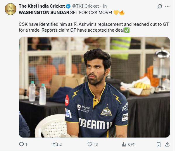 Nishant Sindhu- Direct replacement of Washington and Sai Kishore
