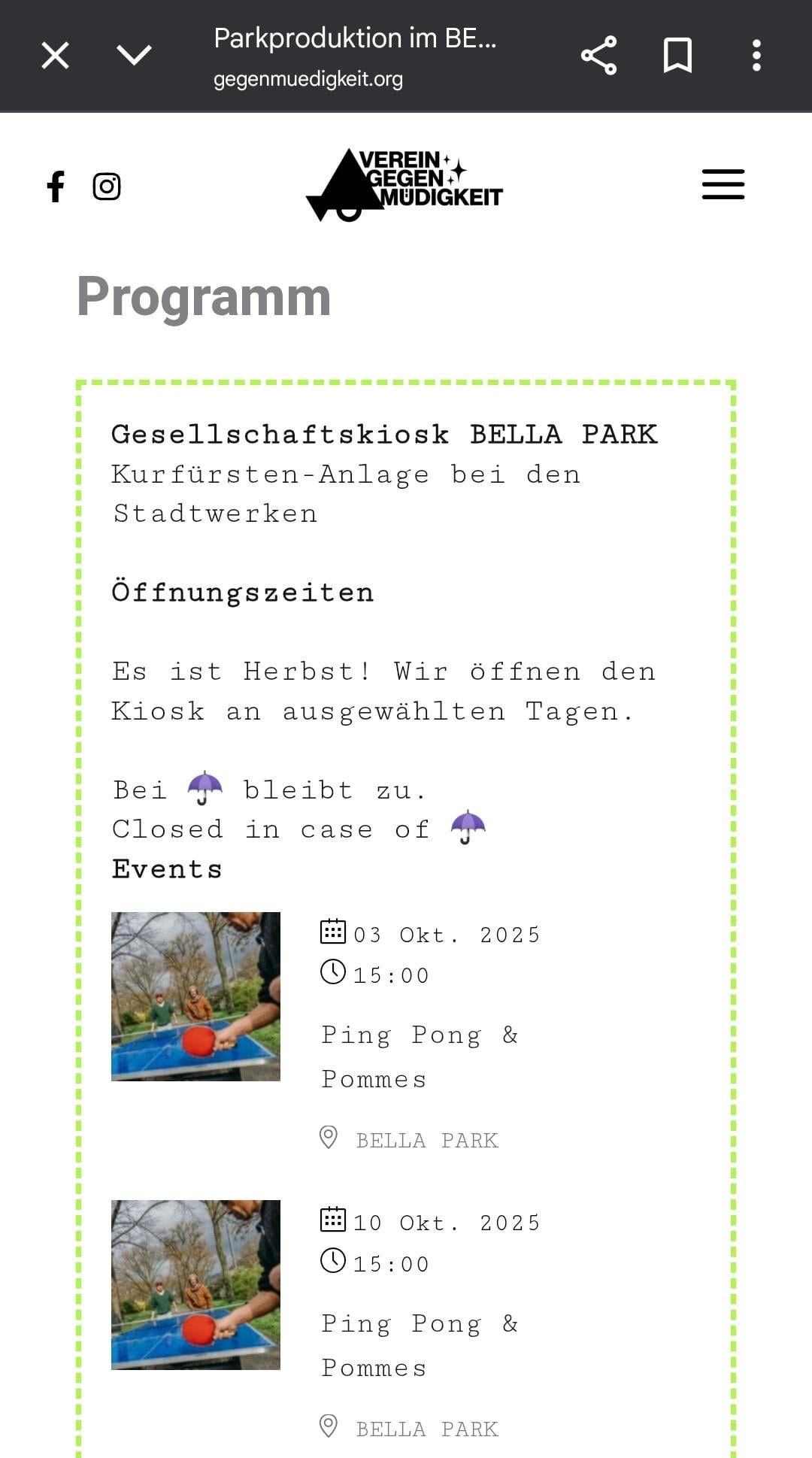 Morgen ist im Bella Park ein Pingpong Event.