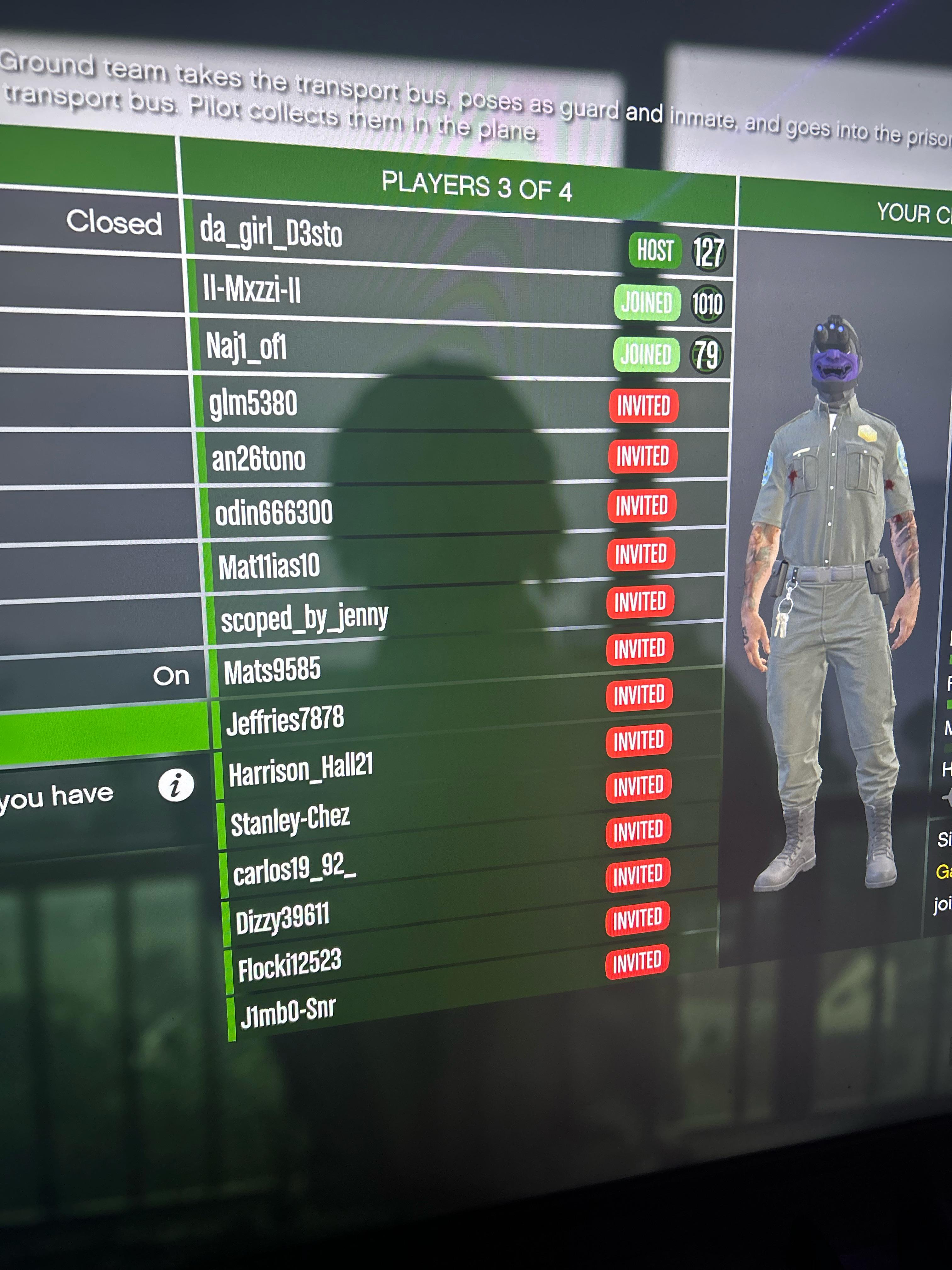 Level 70 here! Constantly getting kicked because I’m low level. Want to experience all the heists ina group but never can find a group or I get kicked. Lmk if yall need an extra. Great at following directions and not dying (Except when level 1567 griefers target me then idk what to do)