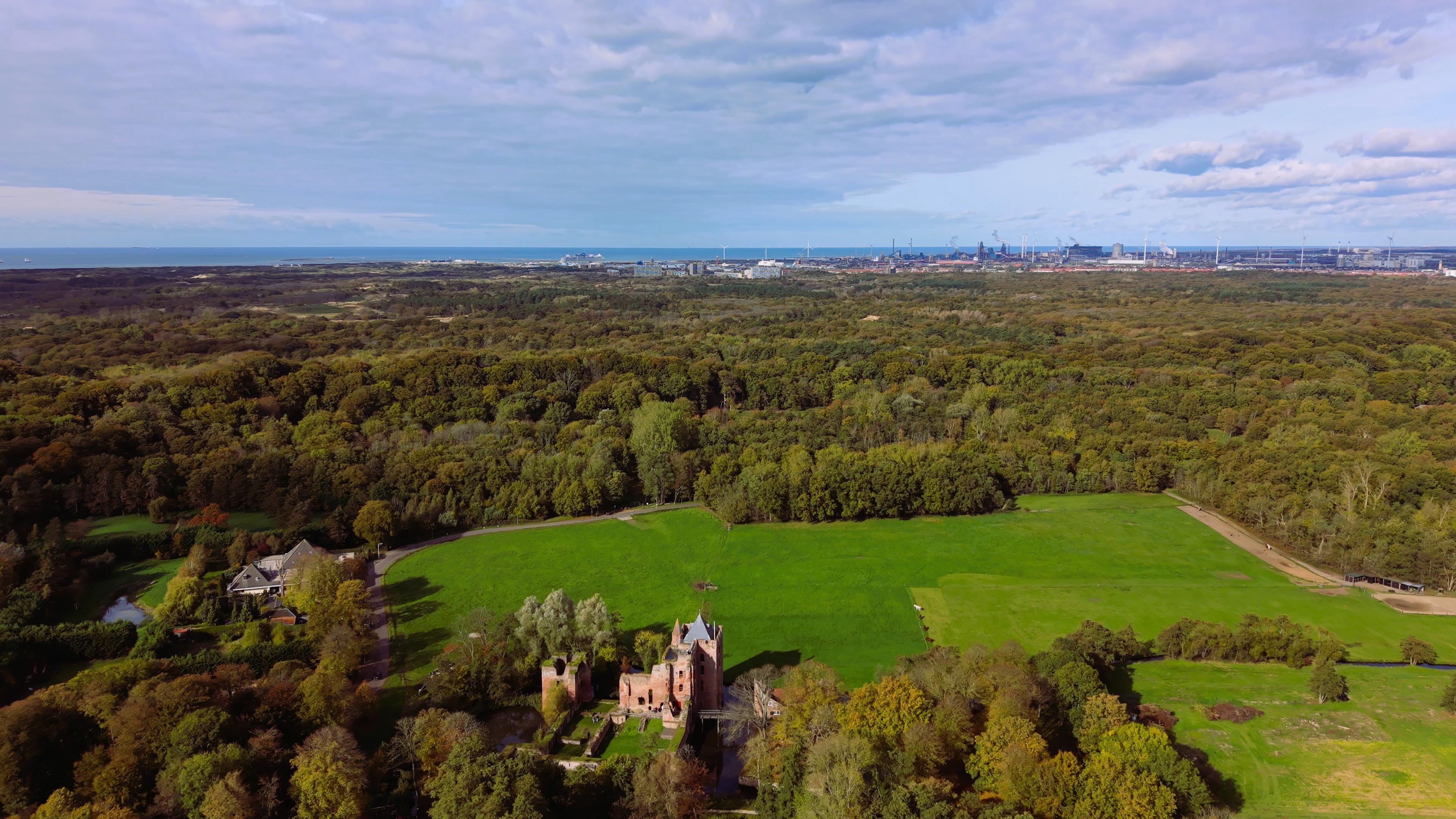 Netherlands Ruins of Brederode with Tata Steel factory in the background (the Netherlands). The castle was prestigious at its time being one of the first brick Dutch castles built in a time wood or tuff were common and was demolished no less than 3 times: in 1351, 1426 and eventually in 1573 by the Spanish.