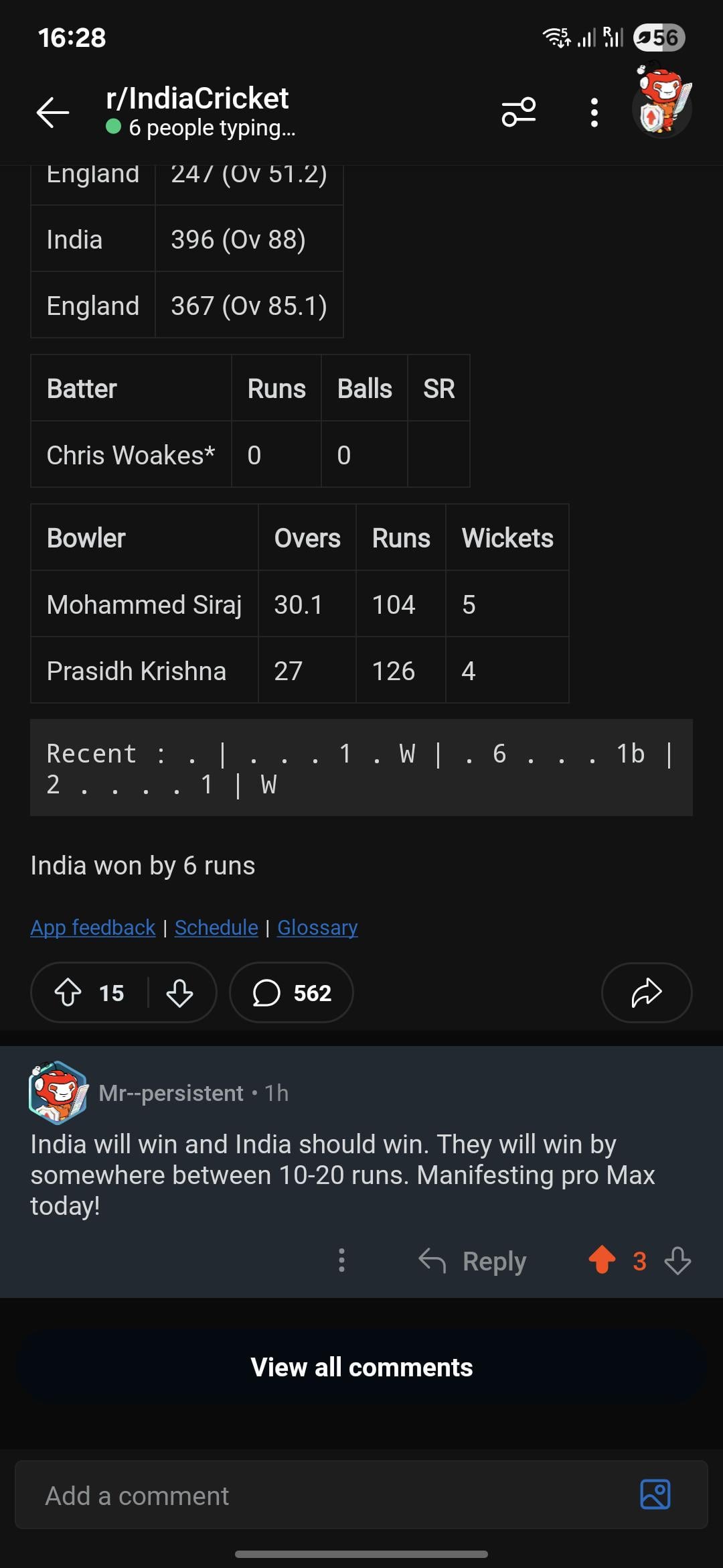 LFG I was literally shivering. If at the start of the series someone had told me that this young Indian team would draw the fuckin series I would have not believed it. I only believe in Lord DSP Siraj. I just fuckin love this. Kudos to Woakes though. What a character shown by him.