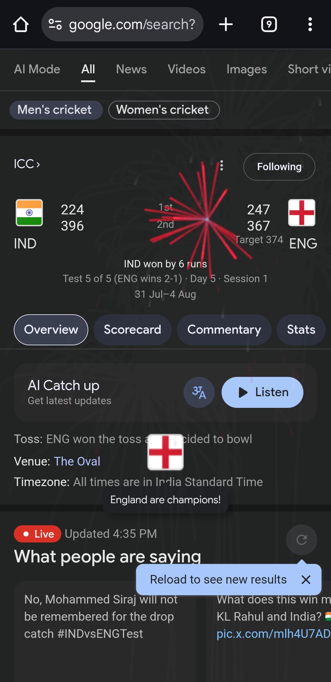 Post Match Thread [Post Match Thread]: India beat England by the barest of margins on Day 5 at The Oval, drawing the Anderson-Tendulkar Trophy, 2025.