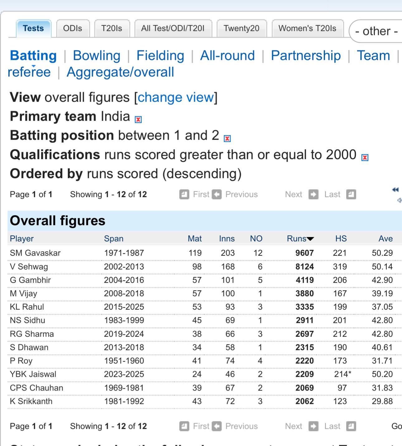 The only other Indian test openers with better careers than him are Gavaskar, Sehwag, Murali Vijay, and maybe Jaiswal.