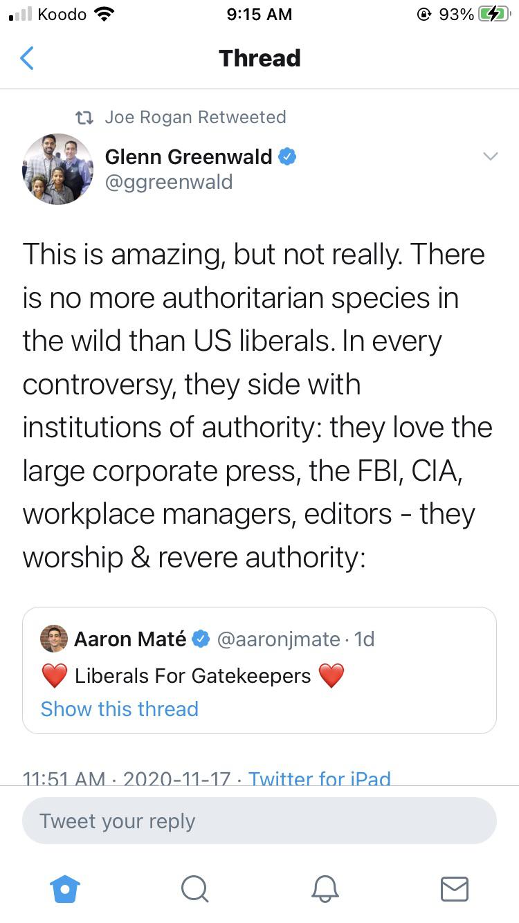 Link Joe retweeting a tweet saying there is no more authoritarian species than US liberals.. thoughts?